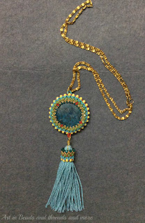 下一件是流苏项链,我想创作有一段时间了,但一直没有时间去做。 我的交换品中的蓝色扁平珠子非常适合这个。 复杂的 皆香 (珐琅首饰)总是让我着迷,所以这是项链 “斋浦尔” 我命名了这门艺术出名的地方。
