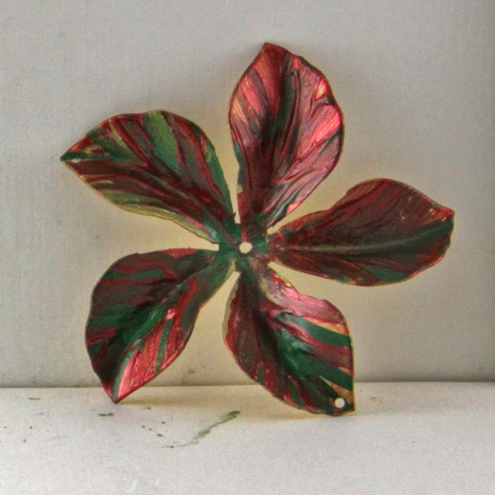 然后我添加了半透明的金色涂料来混合较深的颜色。