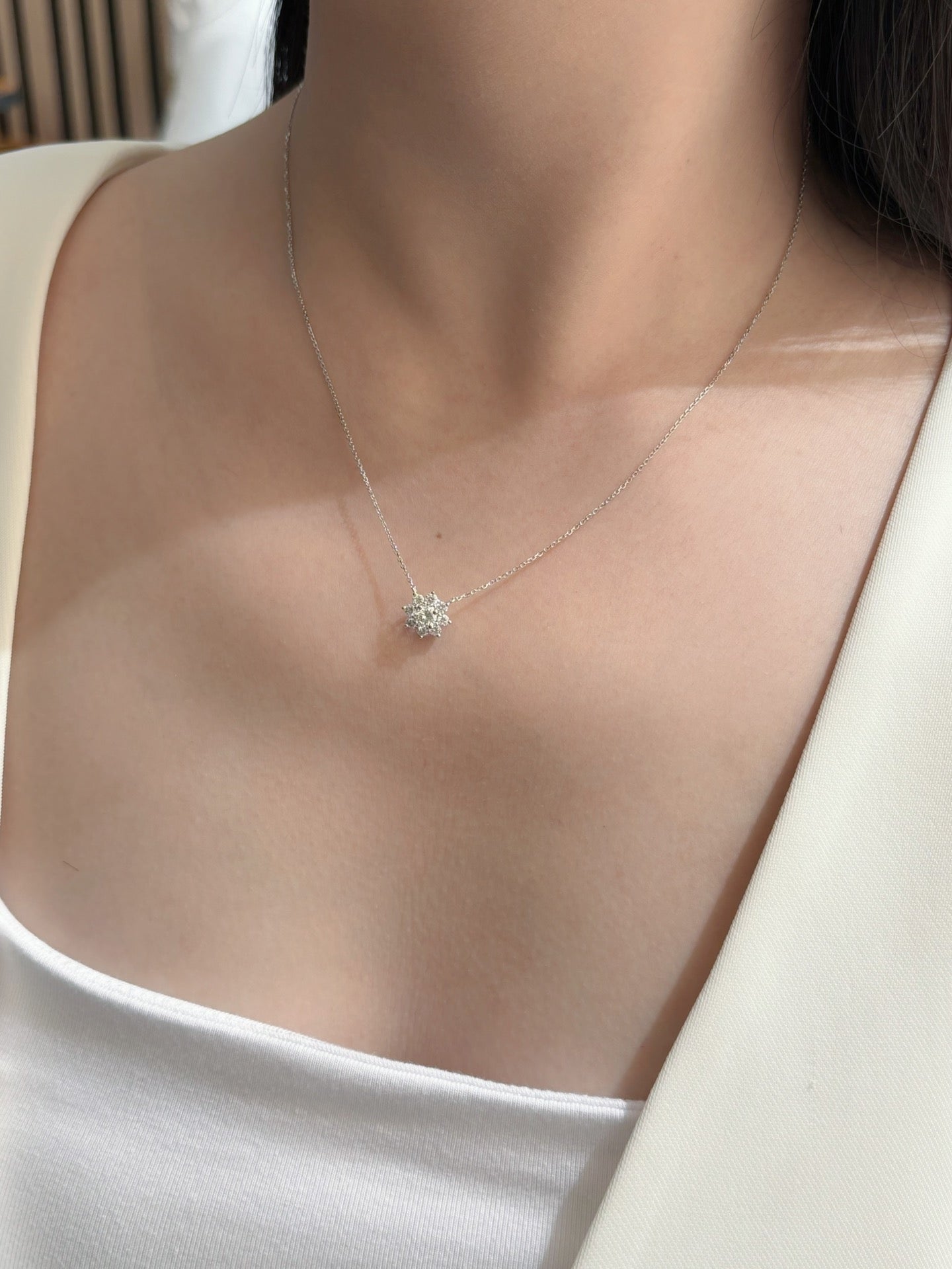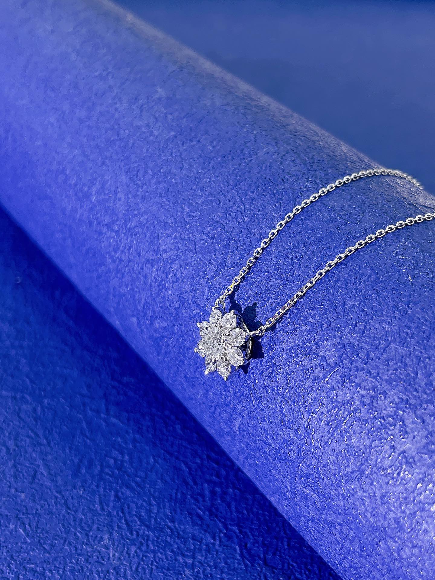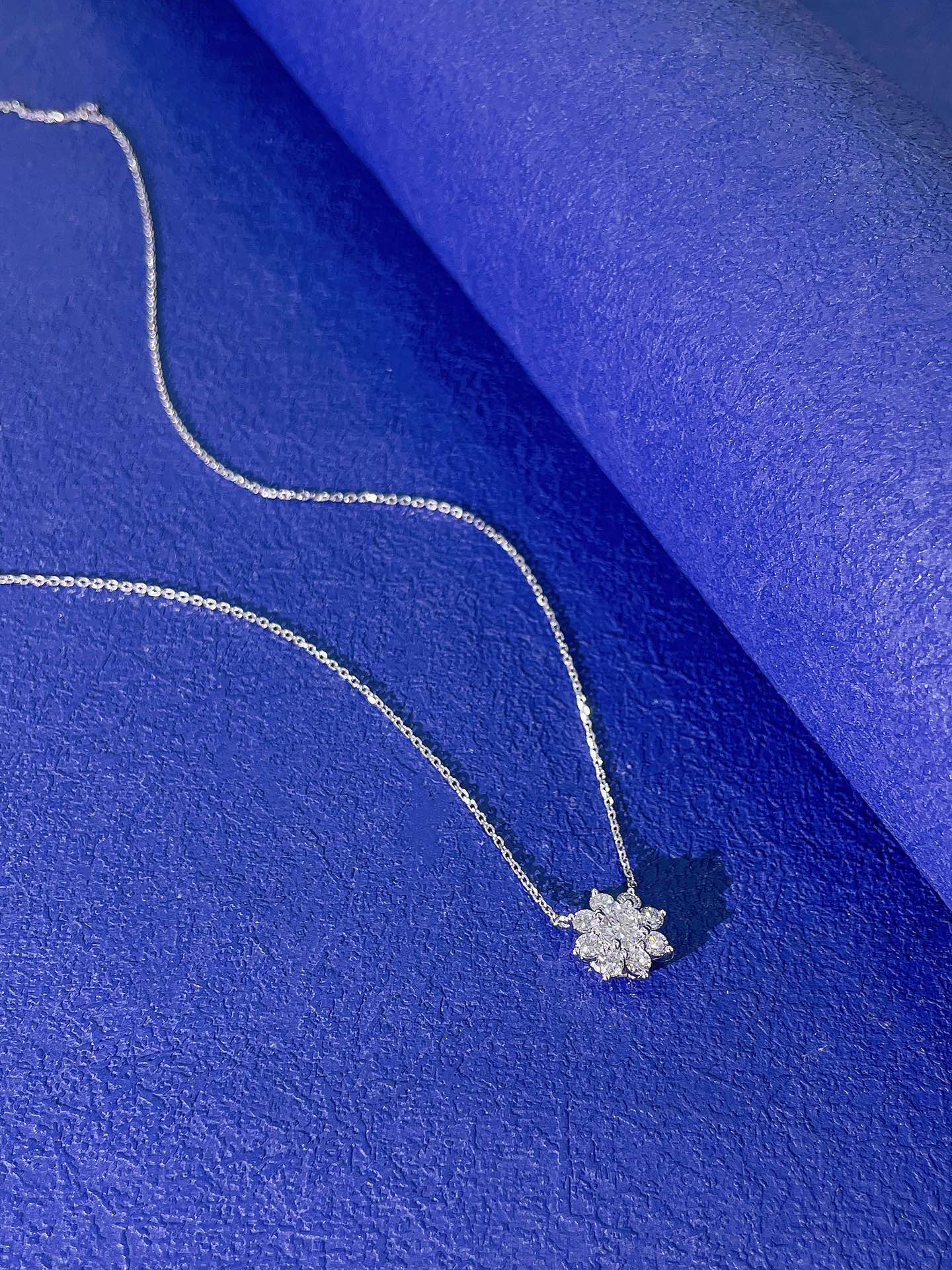 Elevate your elegance with our exquisite 18K Cultured Diamond Sunflower Pendant, featuring a stunning D0.32ct centerpiece surrounded by a sparkling halo of d0.45ct accent diamonds. This pendant, weighing a total of 2.46g, exudes a timeless beauty that’s sure to captivate any audience. Crafted to perfection, it’s a jewelry piece that symbolizes luxury and sophistication. Embrace the allure of this unique sunflower design, where every detail sparkles with promises of enduring elegance. Enhance your collection or gift someone special with this masterpiece of jewelry that’s destined to become a cherished heirloom. Explore the enchantment of fine jewelry and make this exceptional pendant a part of your story today.