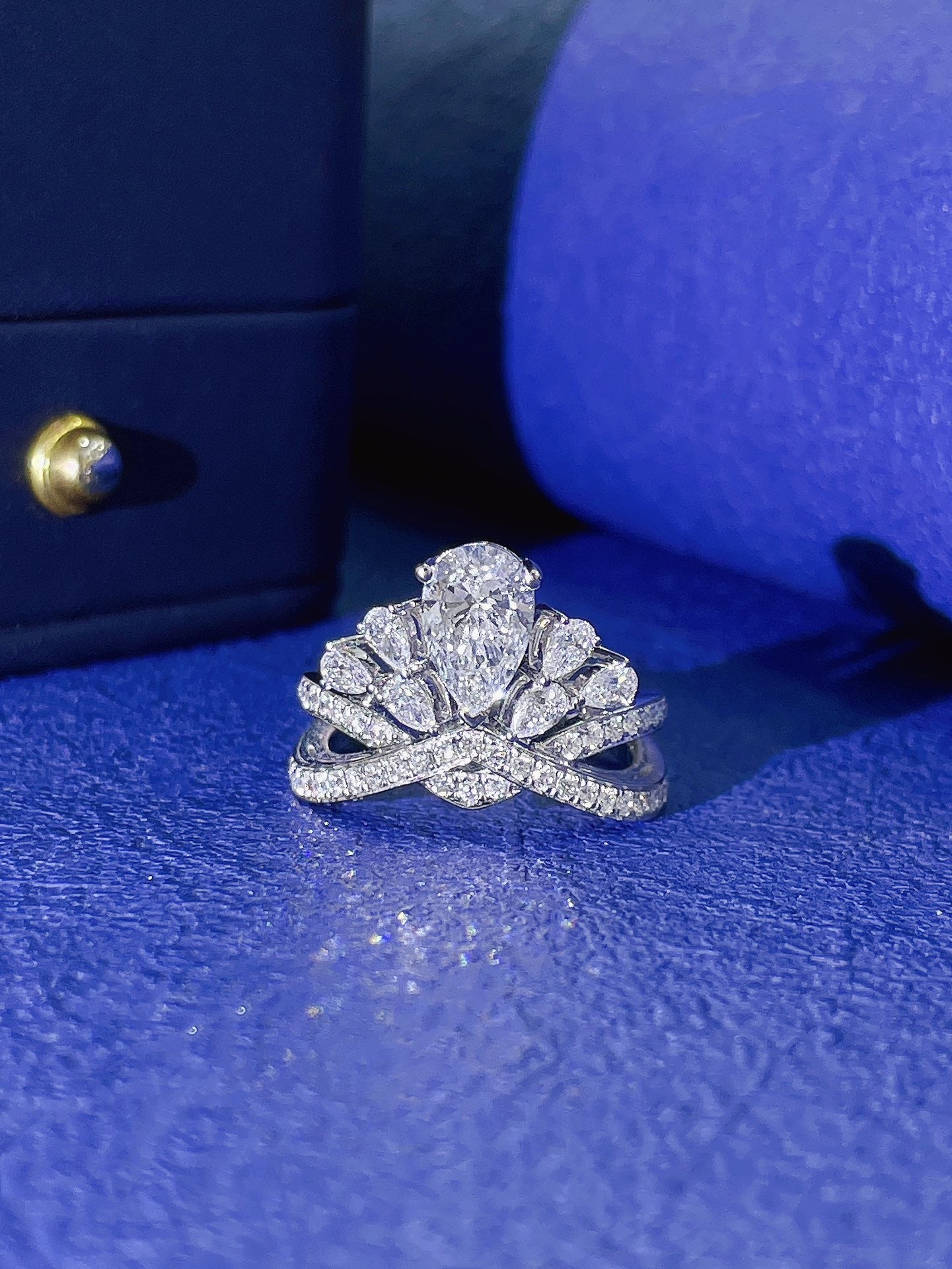 Experience the regal elegance with our exquisite 18K Cultured Water Drop Diamond Crown Ring. This masterpiece boasts a stunning 1.02ct centerpiece complemented by an enchanting 0.81ct of accent diamonds, all elegantly crafted to perfection. The ring, weighing 5.89g, is sized at 13#, making it a perfect fit for those seeking a touch of luxury. Crafted to captivate, this ring is a symbol of timeless beauty and sophistication. Elevate your jewelry collection with this unique piece that promises to make a statement wherever you go. Don’t miss the opportunity to adorn yourself with this crowning glory. Make it yours today!
