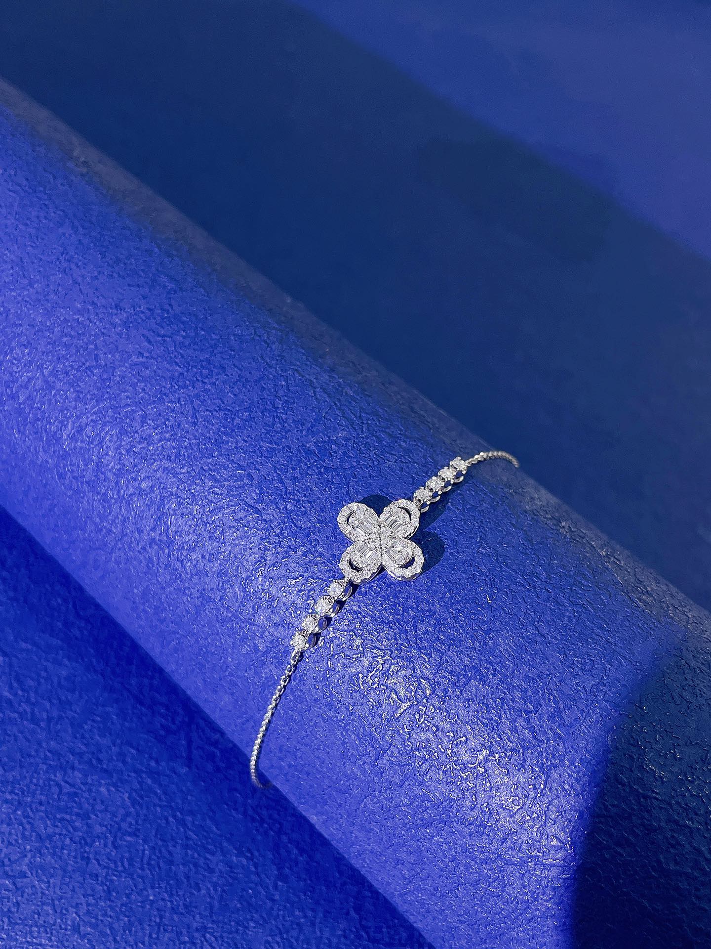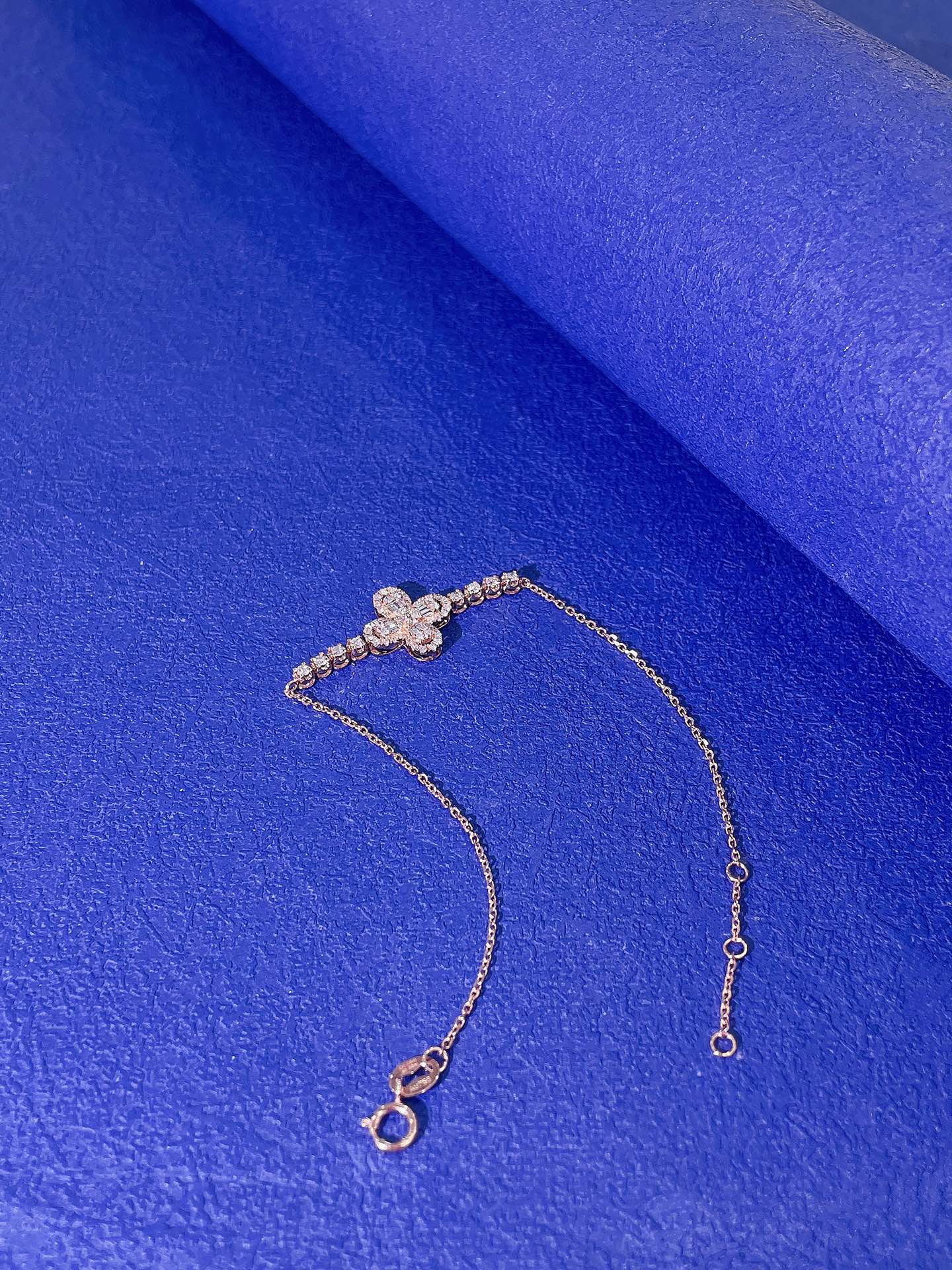 Experience the elegance of our exquisite 18K Diamond Four-Leaf Clover Tiny Bracelet, a jewelry masterpiece designed to captivate hearts. Crafted with precision, this bracelet features a main stone of D0.05ct and accent stones totaling d0.29ct, all elegantly set in a luxurious 18K gold setting. With a total weight of 1.89g and an adjustable length of 16-18cm, it’s the perfect fit for any wrist. Embrace the symbol of luck and elegance with this enchanting piece of jewelry that adds a touch of sophistication to any attire. Don’t miss the opportunity to own this charming bracelet that combines beauty, grace, and a bit of magic. Make a statement and elevate your jewelry collection with this must-have accessory. Shop now and embrace the luxury of fine jewelry!