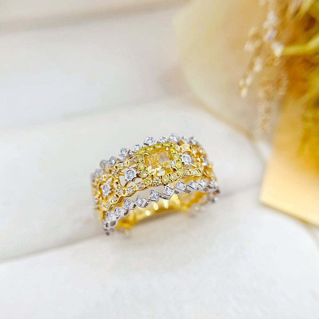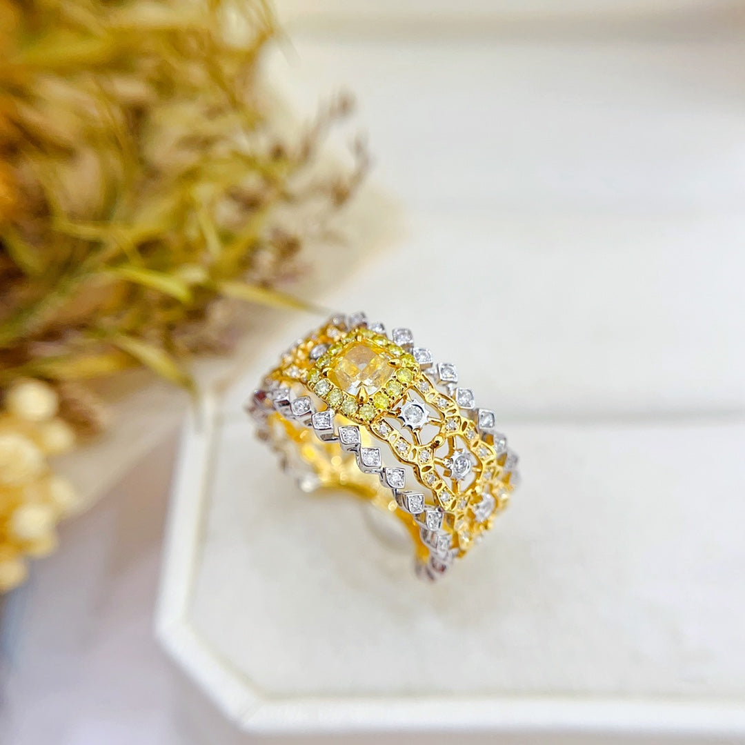 Discover the exquisite elegance of our 18K gold diamond pillow-shaped hive two-tone ring. This stunning piece features a main stone of D0.53ct and accent stones totaling d0.35ct, all crafted into a luxurious 5.95g design. Available in sizes 12# and 15# (with resizable options), this ring is a true masterpiece that adds a touch of sophistication to any ensemble. Elevate your jewelry collection with this timeless beauty that combines elegance with a unique, nature-inspired design. Experience the luxury of premium jewelry and make this exquisite ring a part of your story. Shop now and indulge in the allure of high-end jewelry that’s sure to captivate hearts.