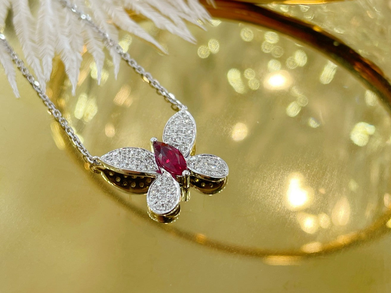 Indulge in the exquisite elegance of our 18K Rose Gold Red Agate Butterfly Pendant Jewelry. This stunning piece features a primary gemstone weighing R0.312ct, complemented by accent stones totaling d0.180ct, all set in a luxurious 18K rose gold frame. With a total weight of 2.64g, this pendant is a perfect blend of sophistication and grace. The captivating red agate butterfly design symbolizes transformation and beauty, making it an ideal accessory to elevate any ensemble. Don’t miss the opportunity to add this unique and enchanting piece of jewelry to your collection. Embrace the beauty and elegance it brings, and make a statement with every wear. Shop now and experience the luxury of fine jewelry.