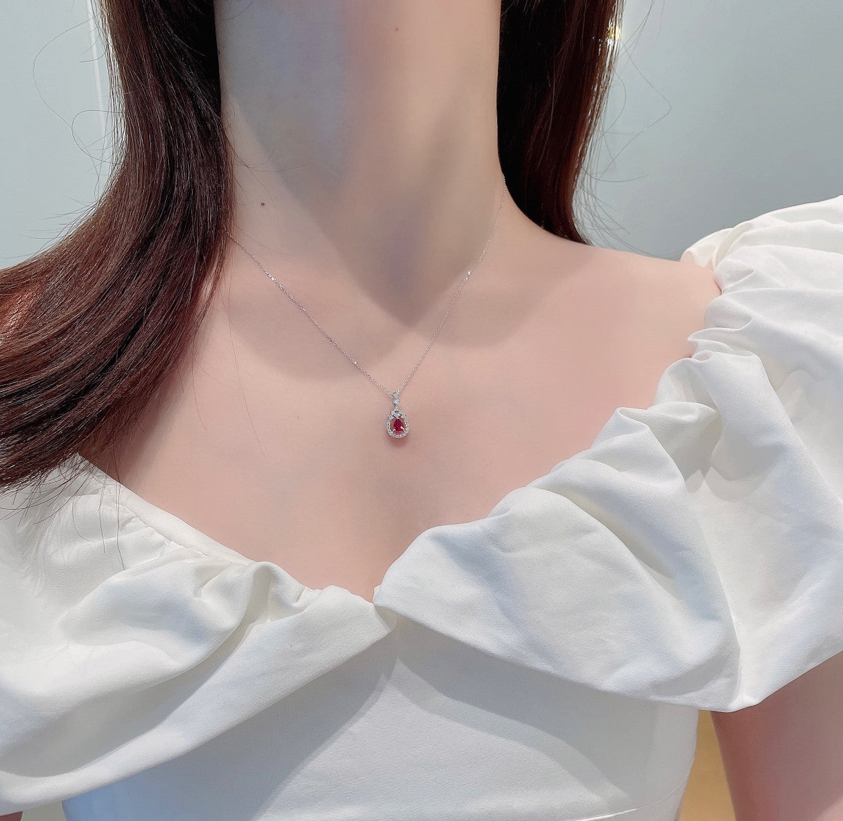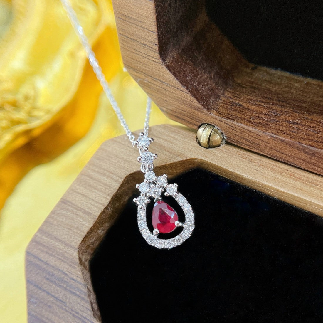 Discover the exquisite elegance of our 18K rose gold ruby drop hollowed-out fashion jewelry necklace. This stunning piece features a main stone weighing R0.28ct and accent stones totaling d0.21ct, all elegantly set in a lightweight design of 1.90g. The unique hollowed-out design adds a touch of modern sophistication, making it a perfect accessory for any fashionable outfit. Enhance your jewelry collection with this captivating necklace that embodies both style and grace. Don’t miss the opportunity to own this remarkable piece of jewelry that effortlessly elevates every look. Shop now and embrace the allure of exquisite jewelry.