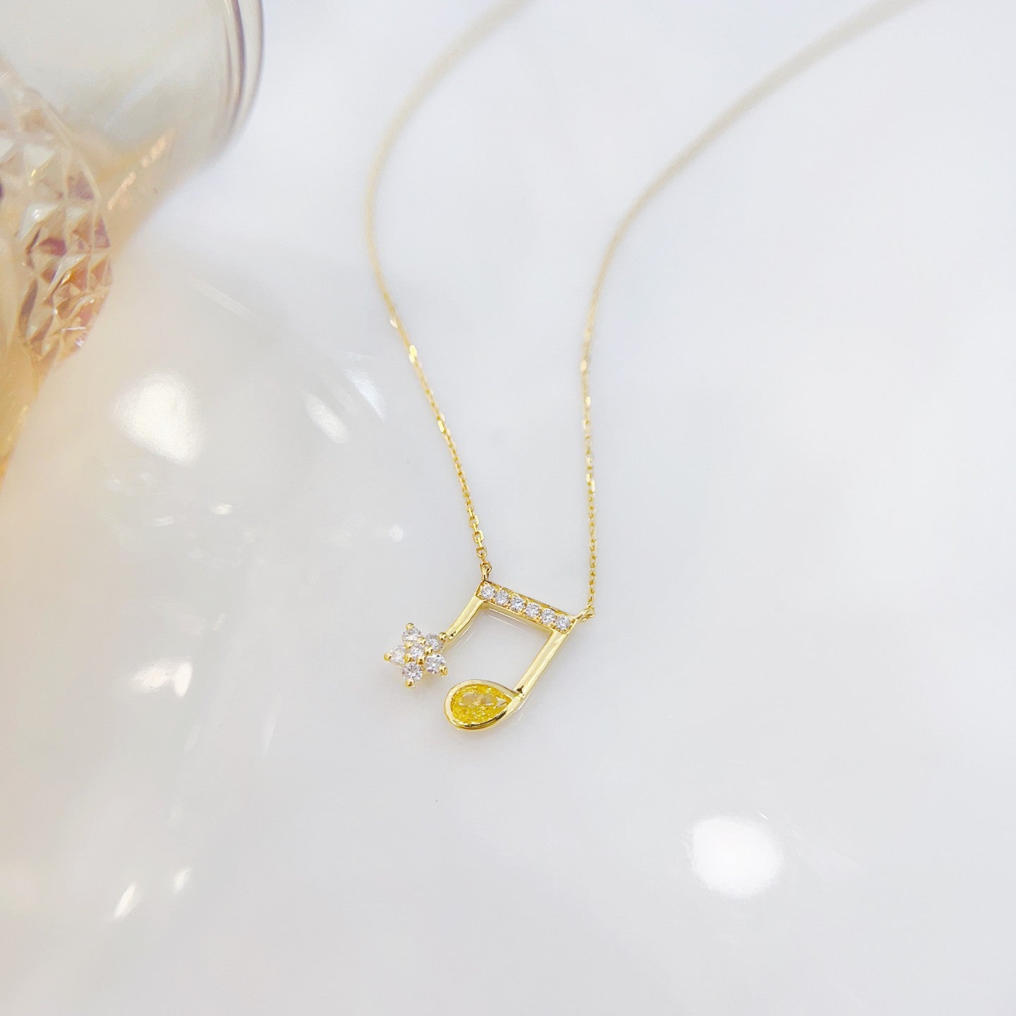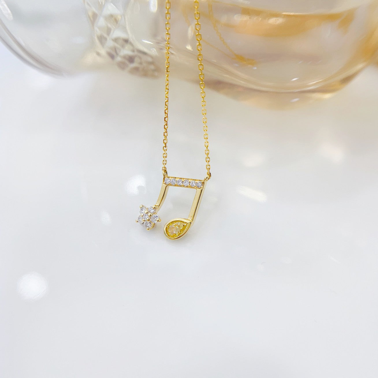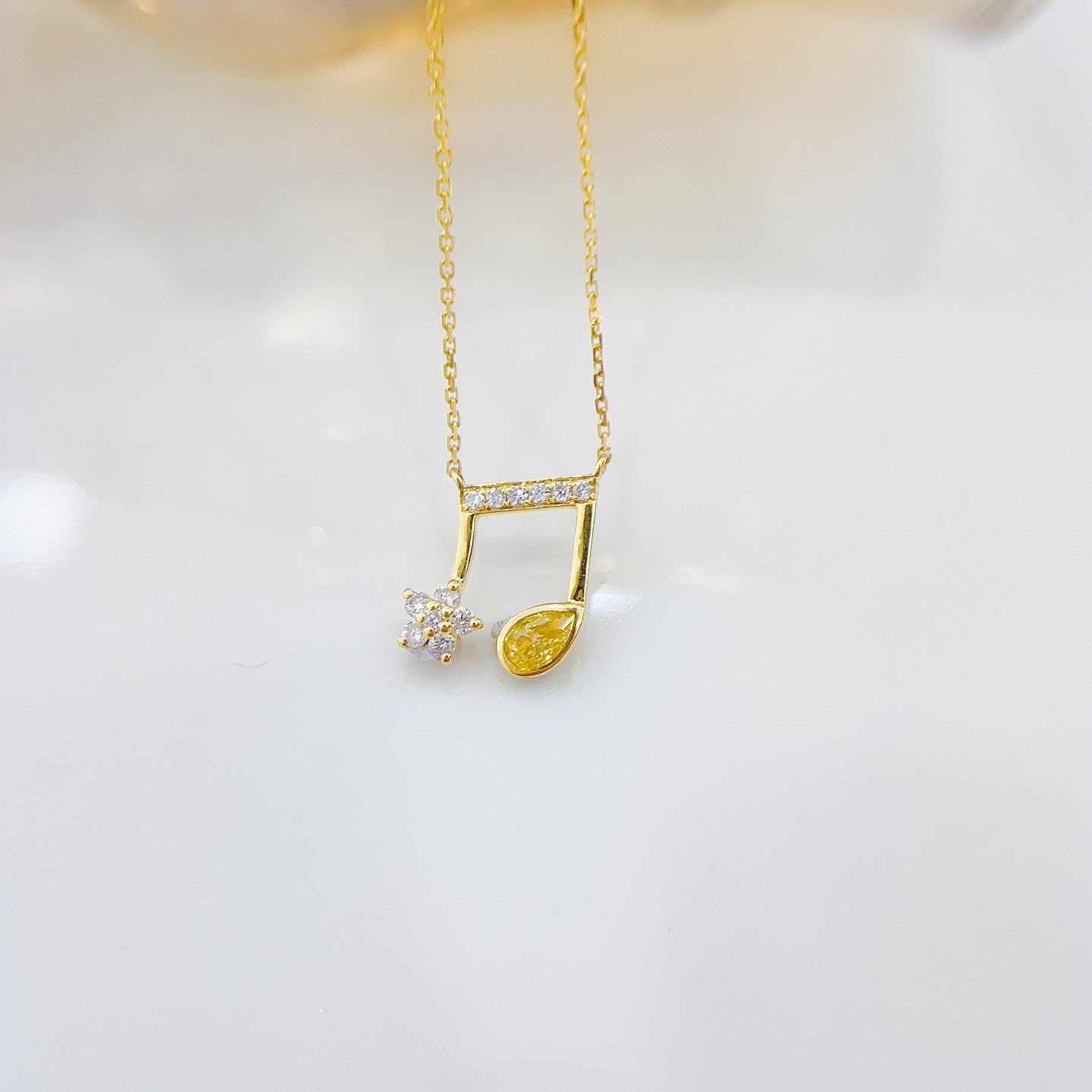 Indulge in the symphony of luxury with our exquisite 18K yellow gold diamond drop musical note pendant. This piece of jewelry is a harmonious blend of elegance and sophistication, featuring a main diamond weighing D0.17ct and accentuated by a secondary diamond of d0.13ct, all gracefully suspended from a delicate chain. With a total weight of 1.87g, this pendant is a lightweight yet statement-making accessory that adds a touch of musical enchantment to any attire. Crafted to perfection, it embodies the essence of timeless beauty and is sure to become a cherished addition to your jewelry collection. Elevate your every look and let the melody of diamonds resonate with every beat of your heart. Experience the luxury of this musical note pendant and make it a symbol of your unique style and refined taste. Shop now and let the symphony of elegance begin.