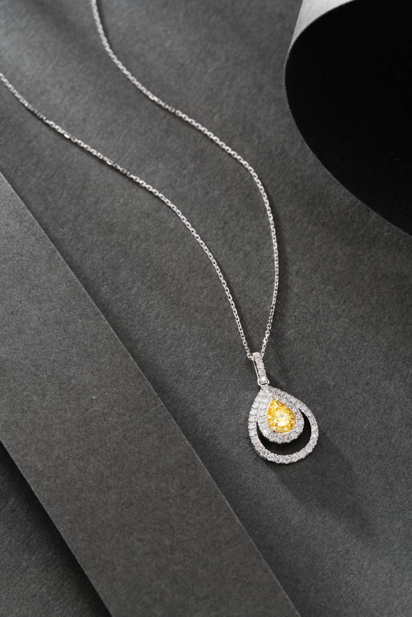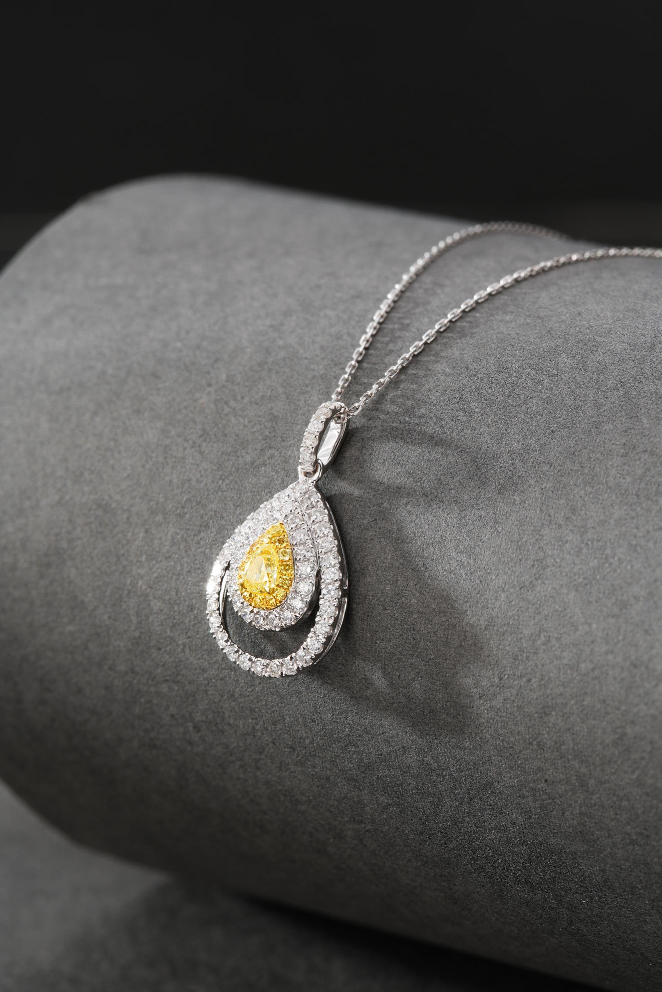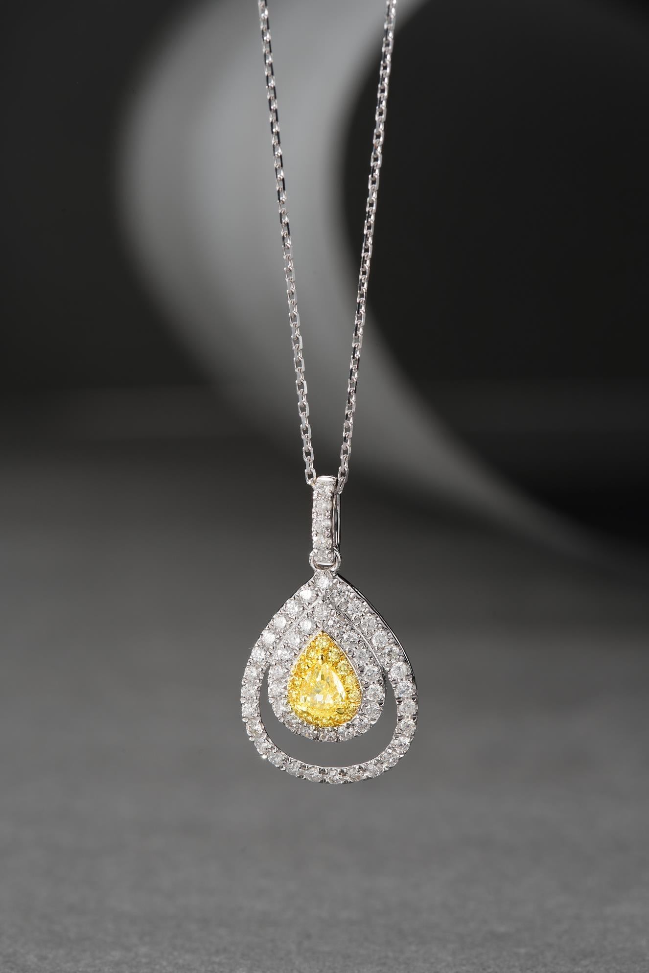 Discover the exquisite elegance of our 18K yellow gold diamond drop necklace, a true masterpiece of jewelry craftsmanship. Adorned with a main stone of D0.184ct and complemented by accent stones totaling d0.41ct, this necklace weighs 2.19g and boasts a design that is both timeless and captivating. Its unique water drop shape adds a touch of sophistication to any attire, making it a perfect choice for special occasions or as a cherished gift for loved ones. Embrace the luxury and make a statement with this stunning piece of jewelry. Shop now and elevate your collection with this exquisite diamond necklace.