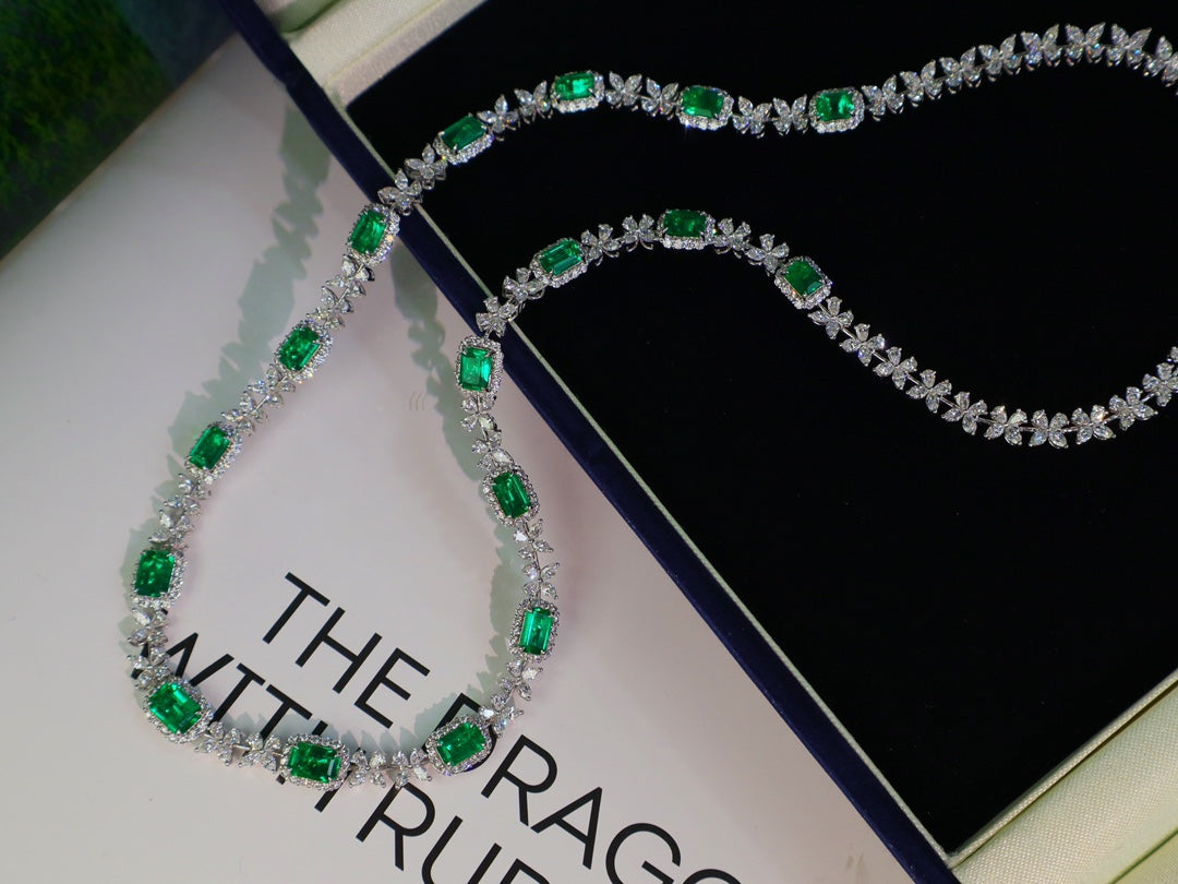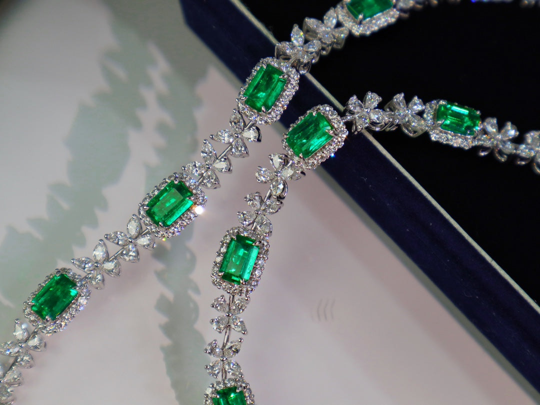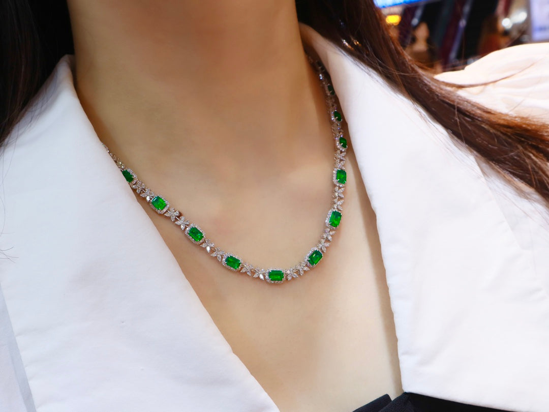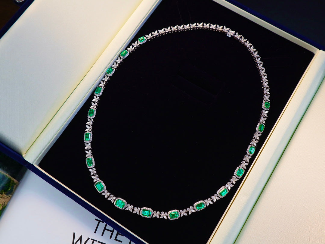 Unveil the elegance with our Collector’s Edition Dinner Party Jewelry, featuring a stunning emerald diamond necklace that outshines all. Crafted with premium Panjshir emeralds, each gemstone is carefully selected to meet the top color standards, showcasing a vibrant Worton Green VB sparkle. The necklace boasts a total of 8.65ct in the centerpiece, surrounded by a full circle of diamonds weighing 10.316ct, all encased in 31.76g of gold. This masterpiece is a true testament to luxury and sophistication, making it an irresistible addition to any jewelry collection. Elevate your presence at any event and make a statement with this exquisite piece. Don’t miss the opportunity to own this rare gem that encapsulates timeless beauty and elegance. Act now to adorn yourself with this magnificent jewelry treasure.