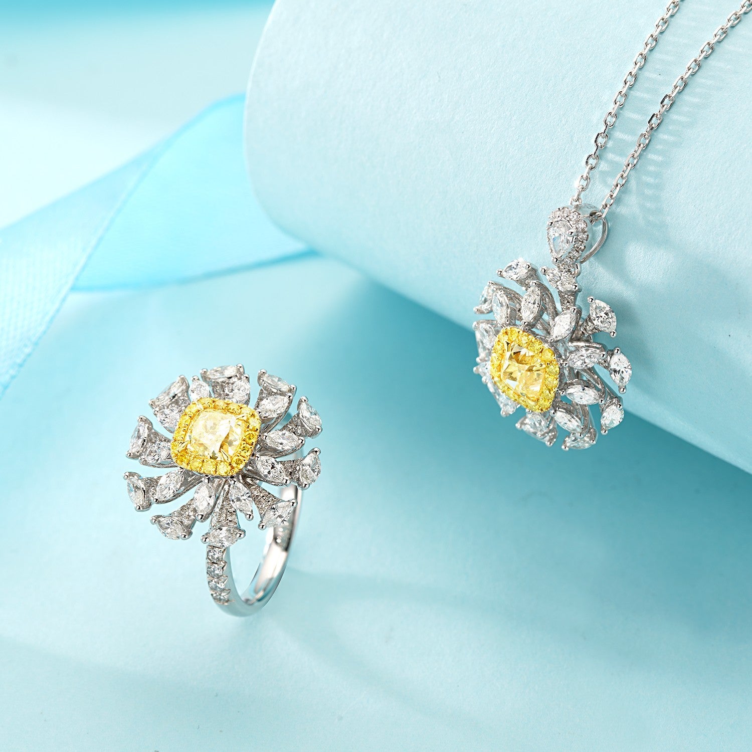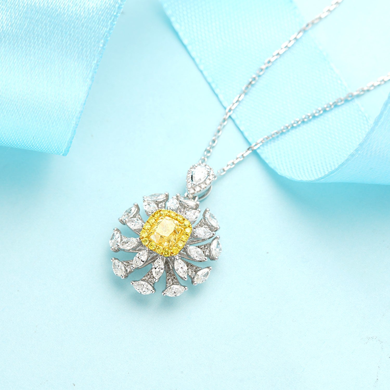 Indulge in the exquisite luxury of our Cushion-Cut Yellow Diamond Pendant, a masterpiece in fine jewelry craftsmanship. The centerpiece boasts a dazzling D1.011ct yellow diamond, accompanied by an elegant accent of d1.695ct stones, all set in a stunning design that weighs 6.08g. This pendant is a true symbol of sophistication and elegance, perfect for adding a touch of glamour to any occasion. Embrace the brilliance of this premium piece and make it the center of attention in your jewelry collection. Experience the allure of high-end jewelry that not only captivates but also appreciates. Elevate your style quotient and make a statement with this exceptional yellow diamond pendant. Shop now and adorn yourself with the radiance of luxury.