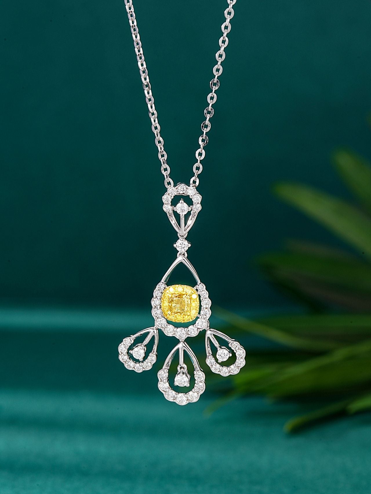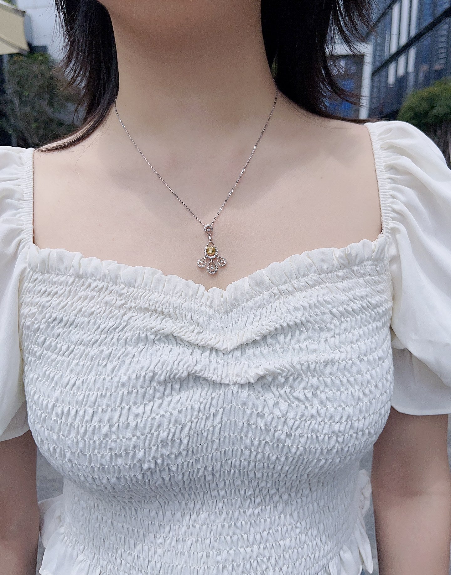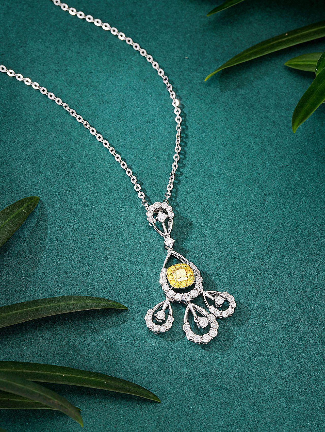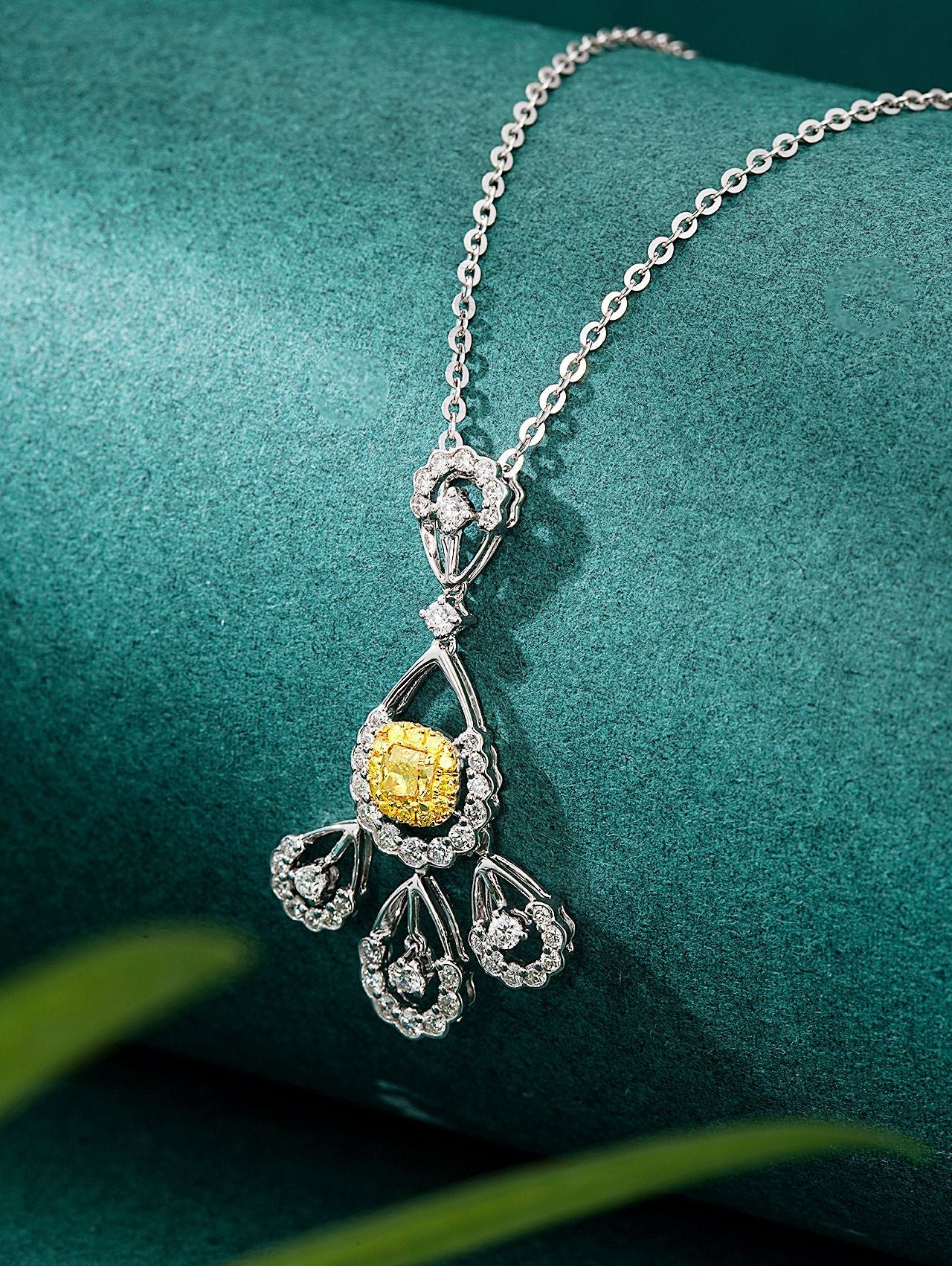 Discover the exquisite Diamond Drop-Shaped Fan Pendant, a true masterpiece in jewelry craftsmanship. This pendant features a central diamond weighing 0.230ct, complemented by smaller diamonds totaling 0.554ct, all gracefully suspended from a delicate fan-shaped design. With a total weight of 3.920g, this pendant is a perfect blend of elegance and sophistication.