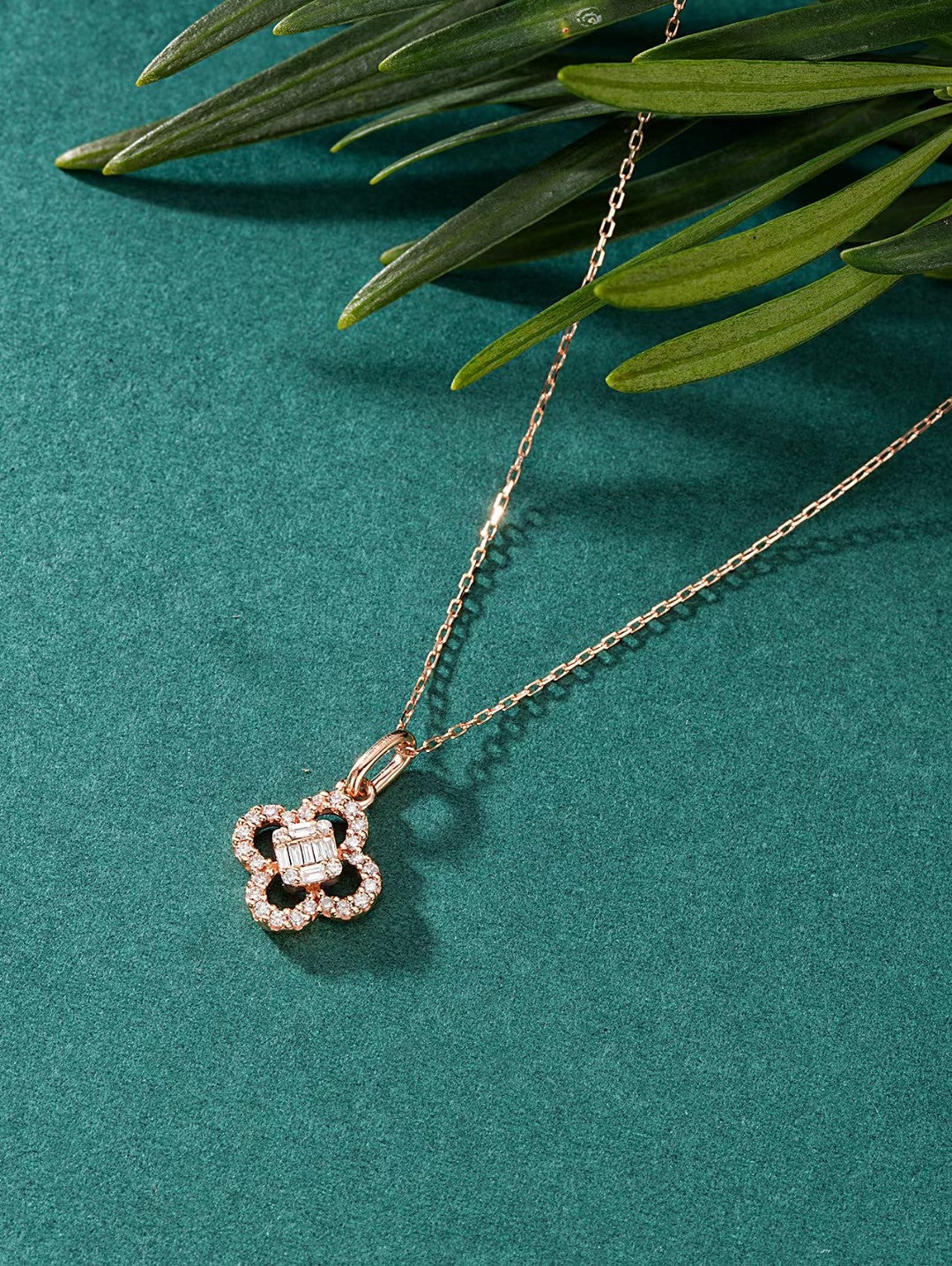 Discover the exquisite elegance of our Diamond Four-Leaf Clover Pendant Jewelry, crafted to perfection with a main stone of 0.06ct and accent stones totaling 0.17ct. This exquisite piece, weighing 2.25g, embodies luxury and sophistication. Embrace the charm of this unique jewelry that adds a touch of glamour to any attire. Explore our premium collection and elevate your style quotient. Don’t miss the opportunity to adorn yourself with this stunning piece of jewelry. Shop now and make a statement!