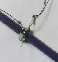 2. 拿一个不相关的珠子,用线把它系起来,留下大约 7 英寸的尾巴。