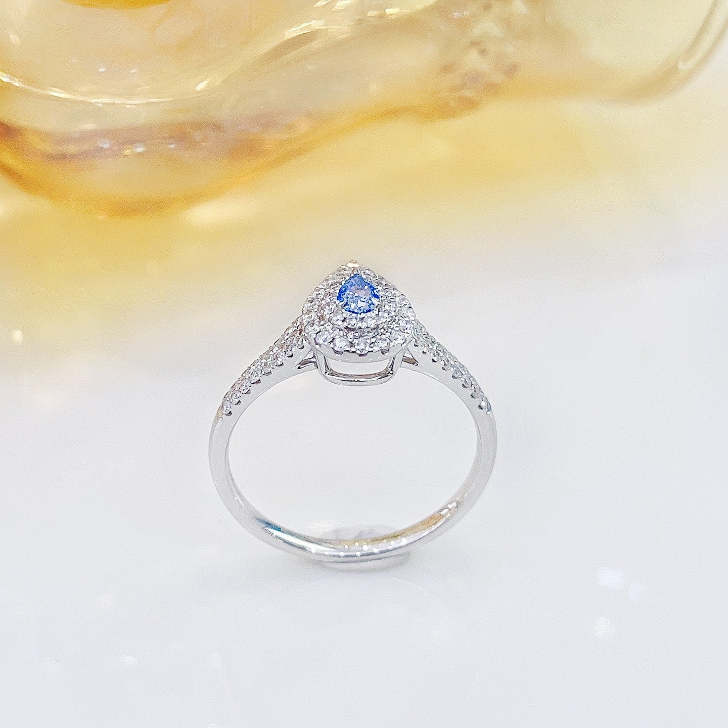 Experience the elegance of our 18K Blue Diamond Drop Y-Arm Ring, a stunning piece of jewelry that adds a touch of sophistication to any ensemble. This exquisite ring features a main stone weighing 0.16 carats and accent stones totaling 0.35 carats, all crafted in a lightweight design of 2.78 grams. Available in sizes 13#, 15#, and 16# (resizable for your perfect fit), this ring is a versatile accessory that complements various styles.