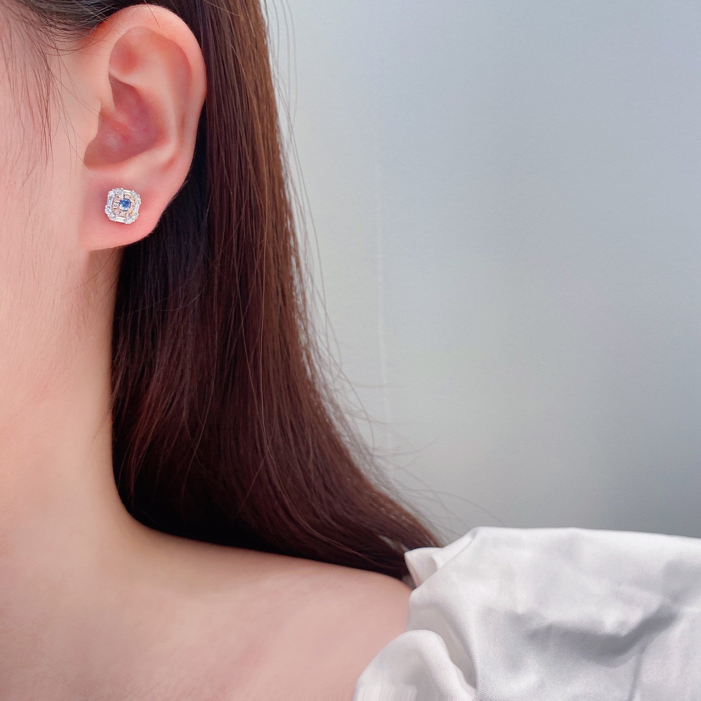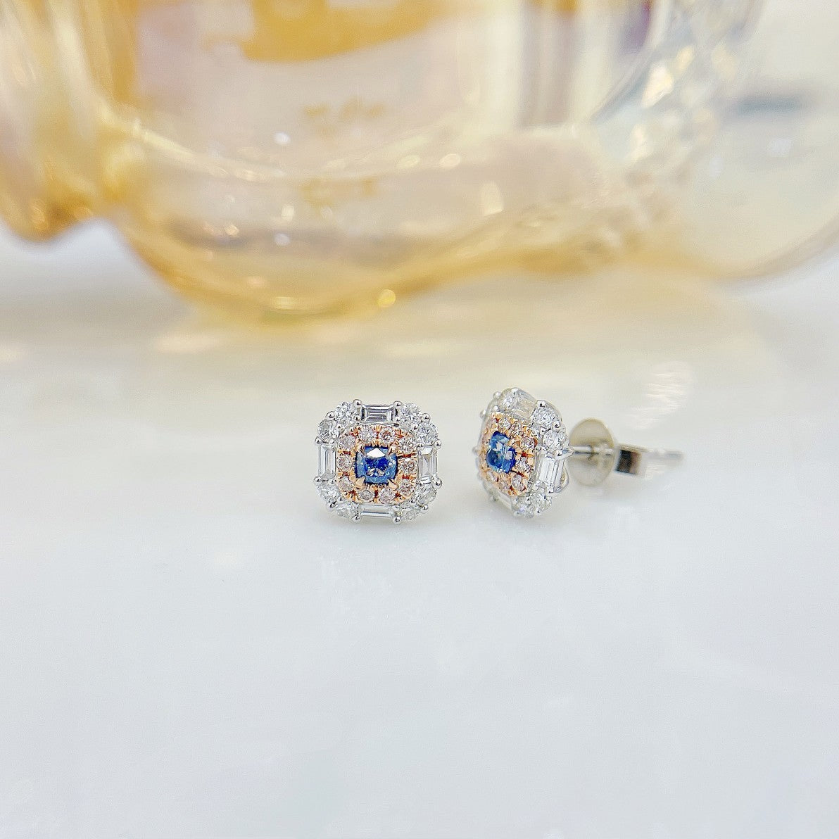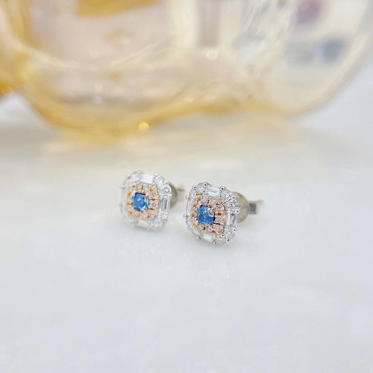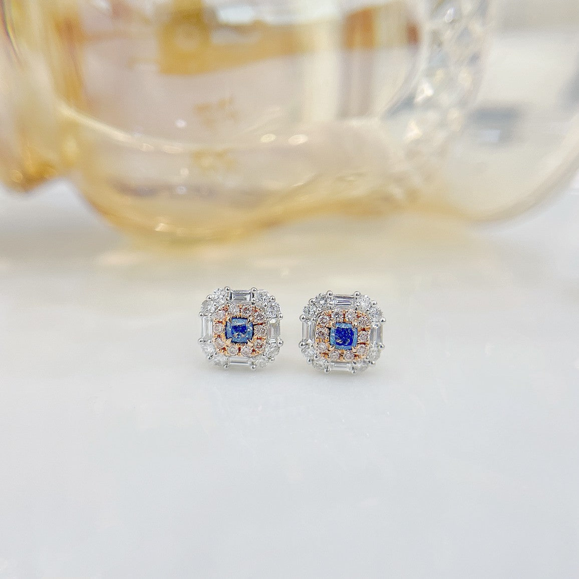 Elevate your elegance with our exquisite 18K Blue Diamond Step-Cut Surrounded Earrings. Crafted to perfection, these earrings feature a captivating main stone of D0.14ct and are beautifully accentuated by surrounding stones totaling d0.44ct. With a total weight of 1.60g, these earrings are designed to make a statement while ensuring utmost comfort. The unique step-cut design of the blue diamond enhances its brilliance, creating a mesmerizing sparkle that catches the light from every angle. Embrace the luxury and sophistication of fine jewelry that not only enhances your natural beauty but also makes you feel confident and special. Make a wise investment in timeless elegance and order your pair today. Experience the allure of premium jewelry that truly stands out. Shop now and elevate your every look with these stunning earrings.