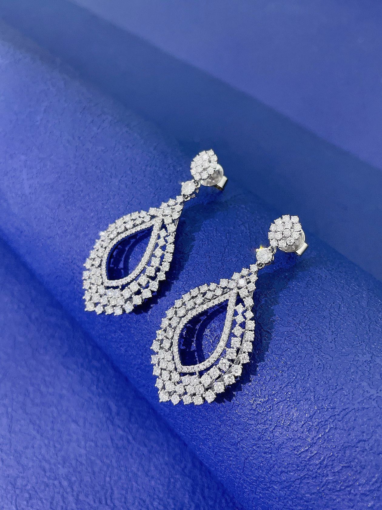 Discover the elegance of our 18K cultured hollow starry sky European style earrings, a true jewelry delight. With a main stone of D0.26ct and accent stones totaling d3.34ct, these earrings weigh 9.11g and are designed to captivate. Crafted to perfection, they embody sophistication and luxury, making them a must-have addition to your jewelry collection. Embrace the enchantment and elevate your style with these exquisite earrings. Shop now and indulge in the beauty of fine jewelry.