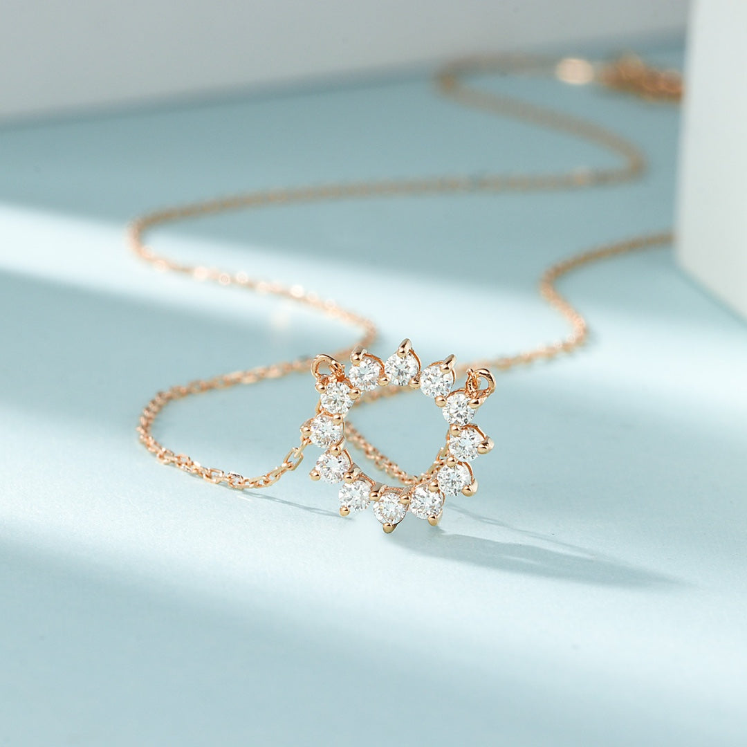 Indulge in the exquisite elegance of our 18K Cultured Sunflower Circle Pendant Necklace, a true masterpiece of jewelry craftsmanship. Adorned with d0.24ct of exquisite accent stones, this necklace boasts a total weight of 1.55g, making it a lightweight yet luxurious accessory for any occasion. The intricate design of the sunflower motif symbolizes vitality and warmth, adding a touch of nature-inspired beauty to your ensemble. Crafted with precision and attention to detail, this necklace is a perfect gift for yourself or a loved one. Elevate your jewelry collection with this stunning piece that effortlessly combines style and sophistication. Experience the allure of fine jewelry and make a statement with our 18K Cultured Sunflower Circle Pendant Necklace. Shop now and embrace the elegance it brings to your every look.