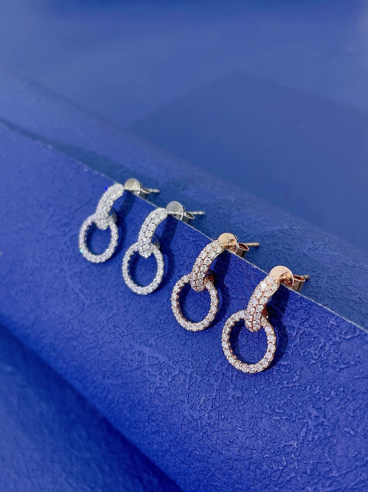 Indulge in the exquisite luxury of our 18K Diamond Circle Stud Earrings, a stunning jewelry piece that adds a touch of sophistication to any ensemble. Crafted with precision and an impeccable attention to detail, these earrings feature a full circle of dazzling diamonds, with each diamond carefully selected for its brilliance and fire. The total diamond weight of the accent stones is 0.56 carats, ensuring a truly mesmerizing sparkle. Lightweight and comfortable to wear, these earrings have a total weight of 1.89 grams, making them an ideal choice for everyday elegance or special occasions. Elevate your jewelry collection with this timeless and elegant piece that is sure to become a cherished staple. Don’t miss the opportunity to make a statement with these exquisite earrings – add them to your cart now and experience the allure of luxurious jewelry.