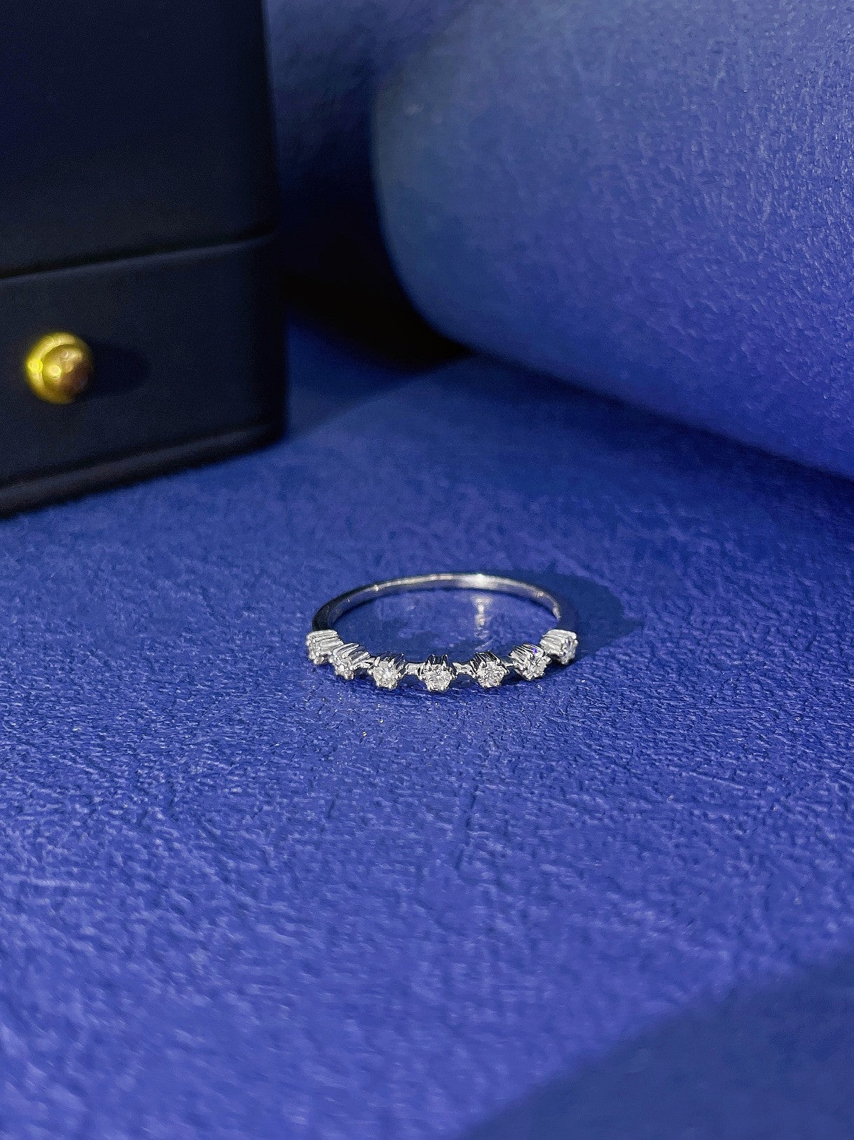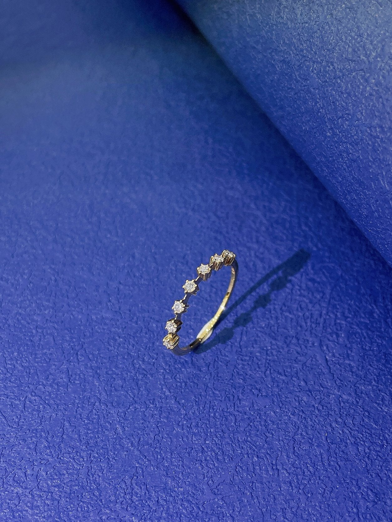 Discover the exquisite elegance of our 18K diamond cluster ring, featuring a captivating design with 7 stones spaced evenly across the band. Each accent diamond weighs d0.18ct, contributing to a total weight of 1.09g. Crafted for comfort and style, this ring is available in sizes 11 to 16# and can be resized to fit perfectly.