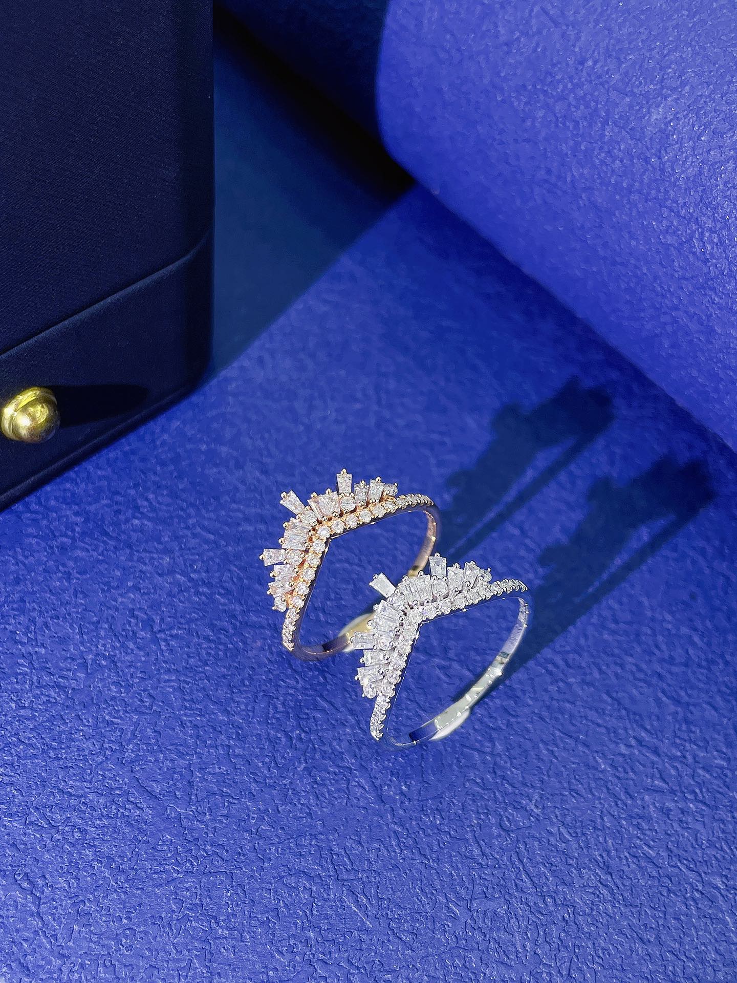 Indulge in the elegance of our 18K Diamond Crown Step Cut Ring, a true masterpiece of jewelry craftsmanship. This exquisite ring features a main stone of D0.21ct and accent stones totaling d0.19ct, all beautifully set in a design that exudes regal charm. With a total weight of 1.65g, this ring is not only a symbol of luxury but also a comfortable fit, thanks to its adjustable ring size from 10 to 18#.