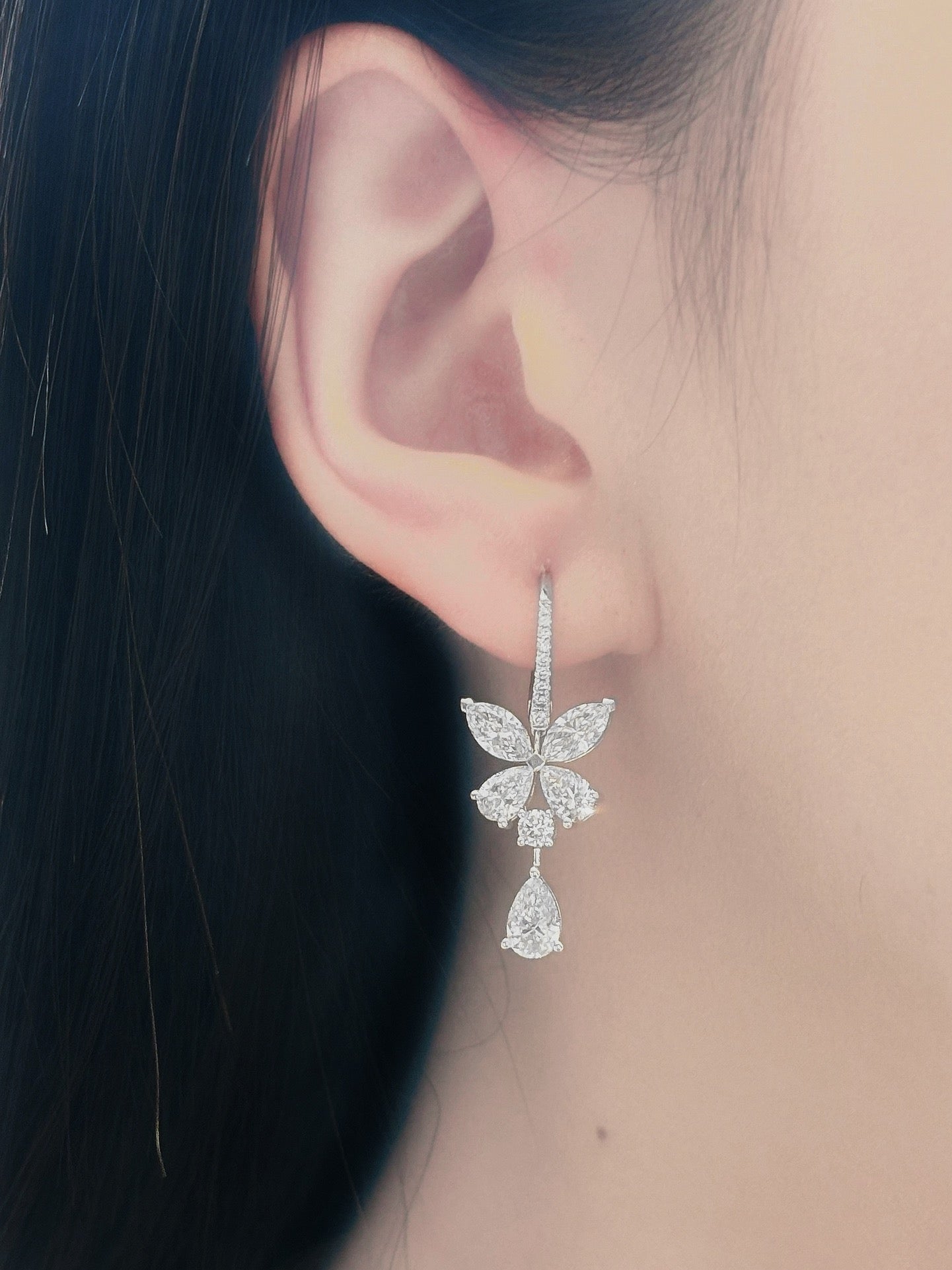 Discover the exquisite elegance of our 18K Diamond Cultured Marquise Butterfly Drop Earrings. The centerpiece boasts a magnificent D3.52ct marquise-cut gem, complemented by a delicate d0.34ct accent stone, all weighing a total of 5.8g. Crafted with precision and designed to captivate, these earrings are a symbol of luxury and sophistication. Enhance your jewelry collection with this unique piece that effortlessly combines beauty and grace. Experience the allure of high-end jewelry that not only elevates your style but also makes a statement. Shop now and embrace the enchantment of these earrings, a true gem等待to adorn your every moment.