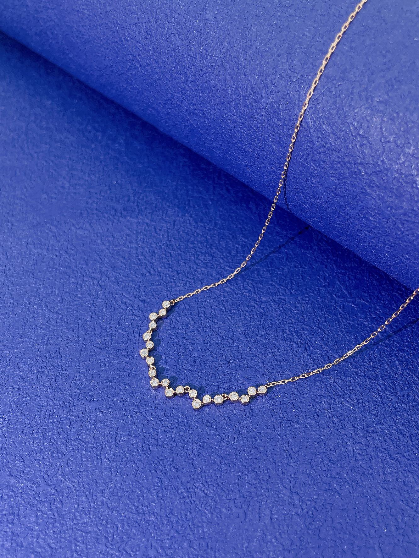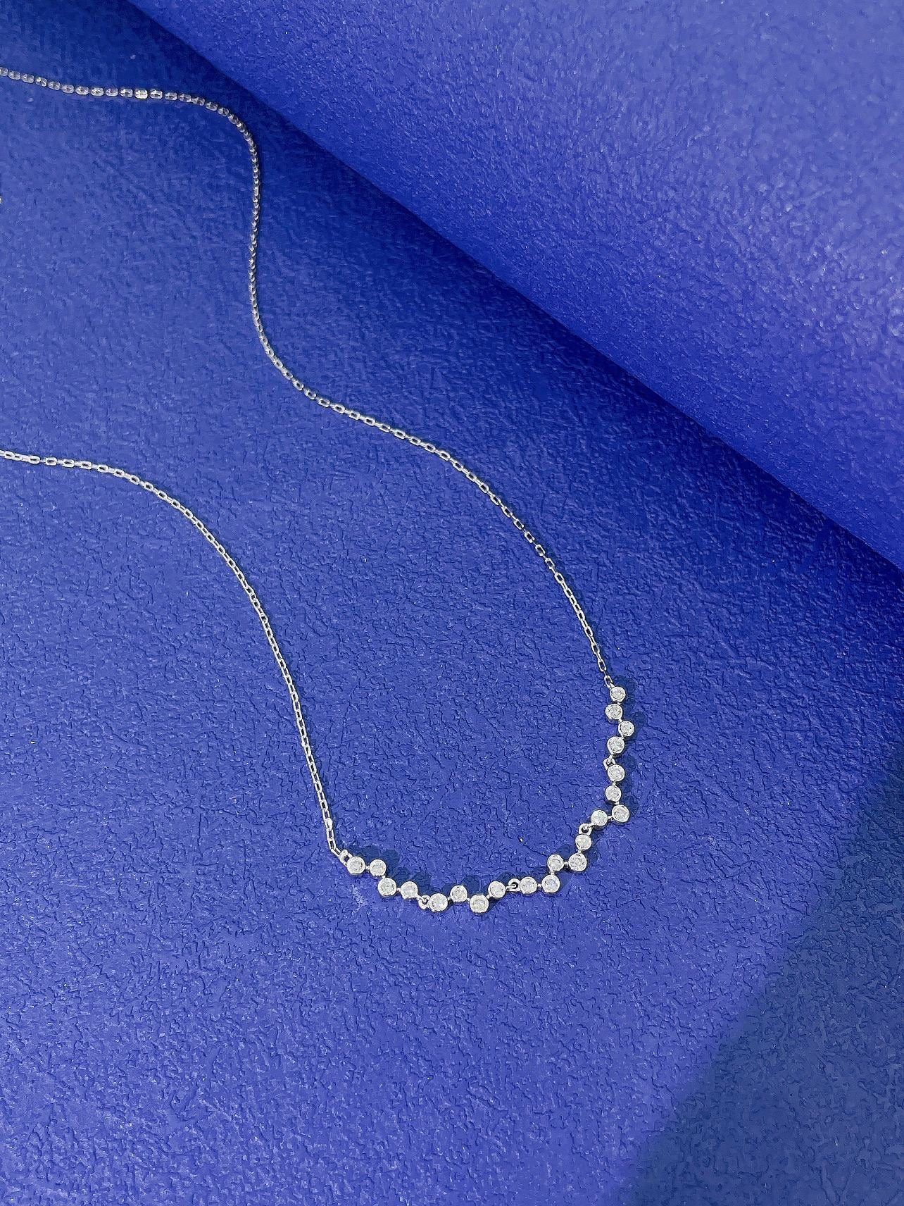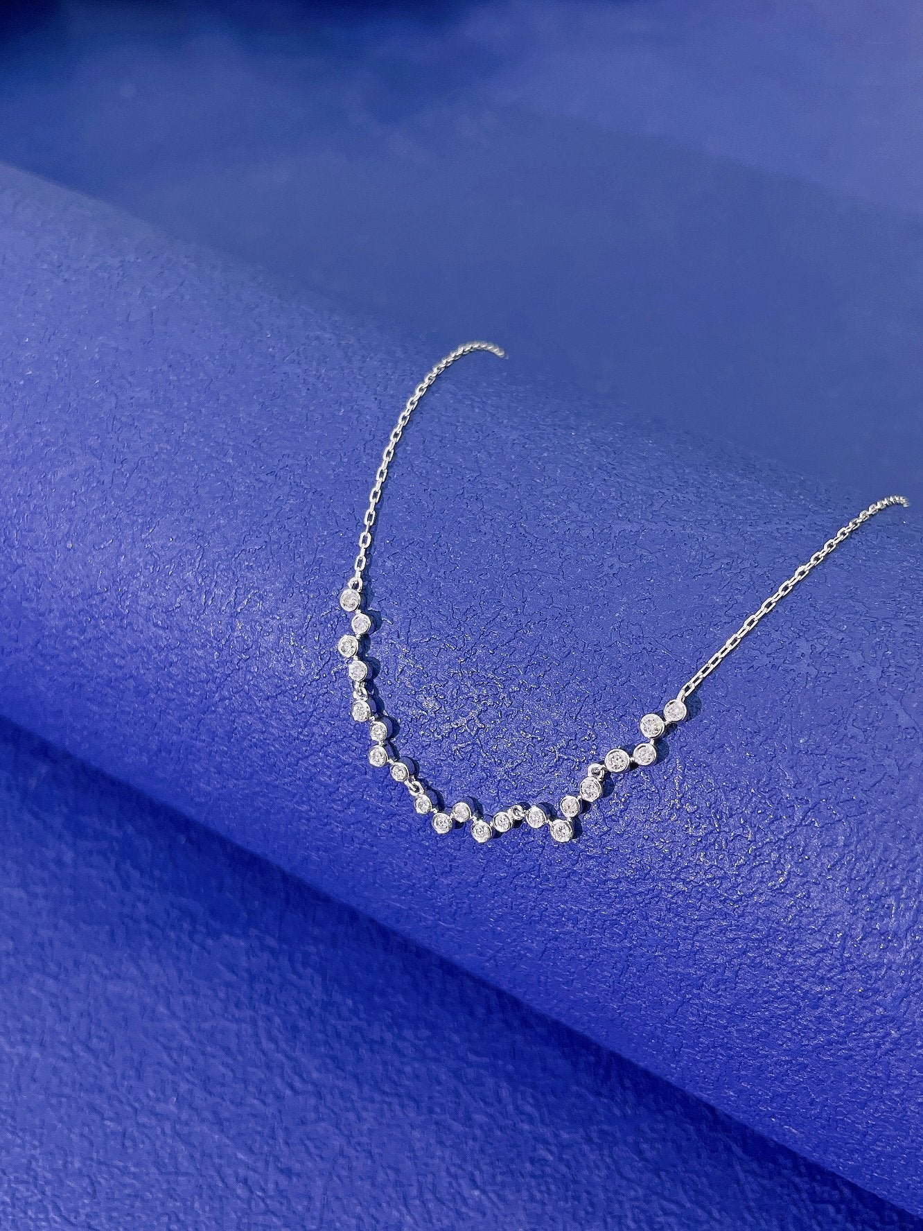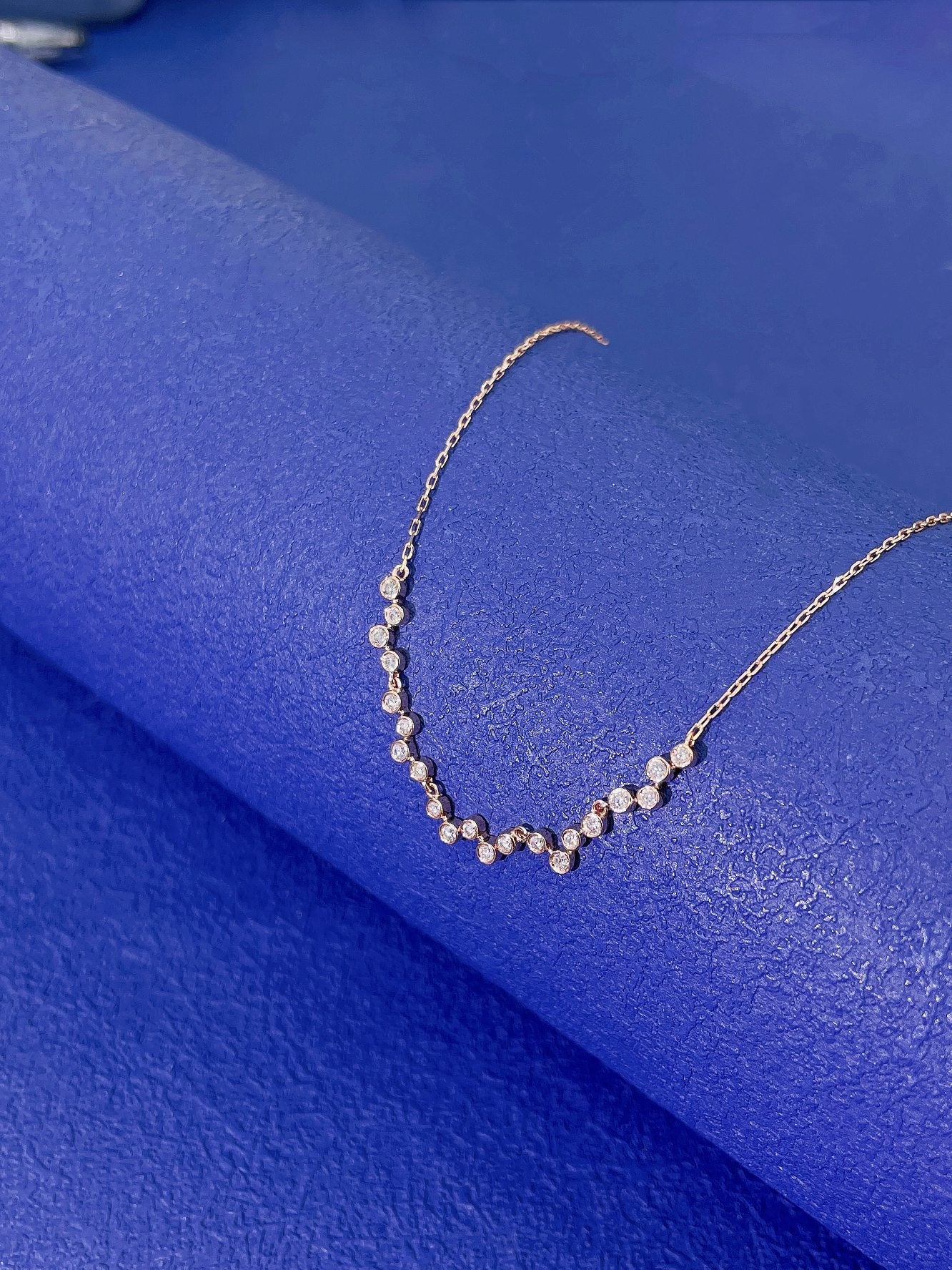 Indulge in the exquisite elegance of our 18K diamond delicate starry sky necklace, featuring a meticulously crafted design adorned with side stones totaling 0.21 carats and weighing 1.79 grams. This jewelry piece is a true representation of sophistication and luxury, perfect for adding a touch of glamour to any occasion. Embrace the allure of this enchanting necklace and elevate your jewelry collection with a piece that radiates timeless beauty. Don’t miss the opportunity to make this exquisite jewelry yours. Shop now and experience the elegance it brings to your every moment.