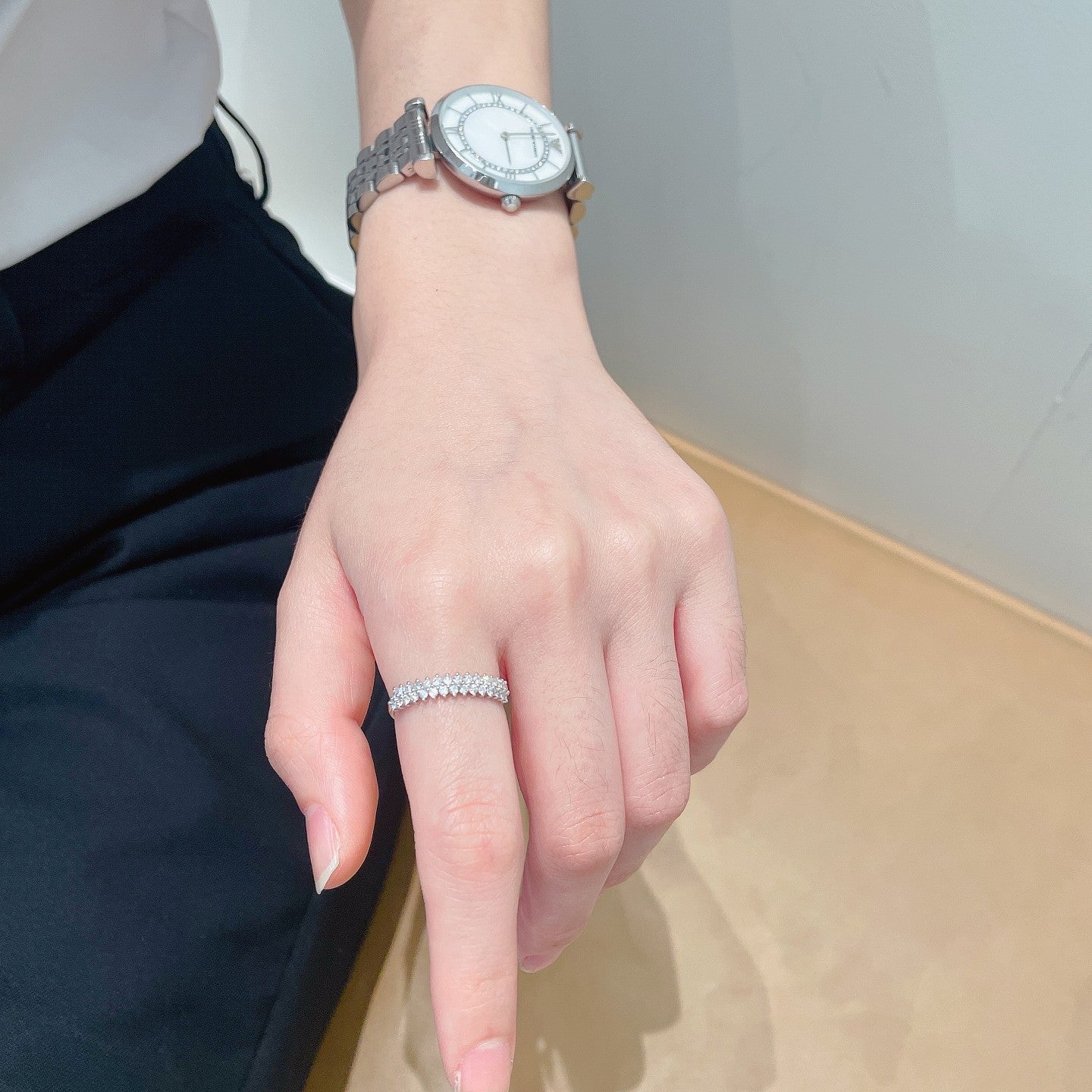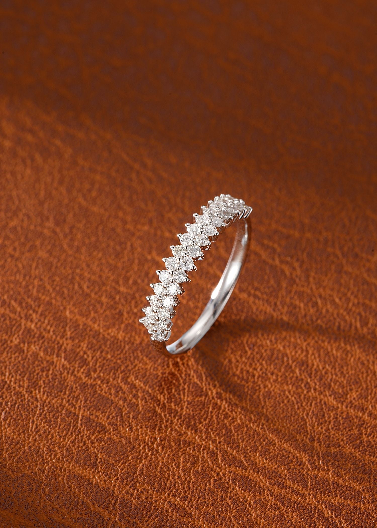 Discover the timeless elegance of our 18K Diamond Double Row Round Cut Ring, a masterpiece of fine jewelry craftsmanship. Adorned with side stones totaling 0.36 carats and weighing 1.60 grams, this ring exudes luxury and sophistication. Available in sizes 11# to 17# (adjustable for a perfect fit), it’s a versatile piece that promises to elevate any ensemble. Crafted to perfection, this ring is not just an accessory; it’s a statement of refined taste and an investment in enduring beauty. Experience the allure of exquisite jewelry that transcends trends – make this stunning ring a part of your collection today. Explore the elegance that awaits with our 18K Diamond Double Row Round Cut Ring – a jewelry treasure designed to captivate.