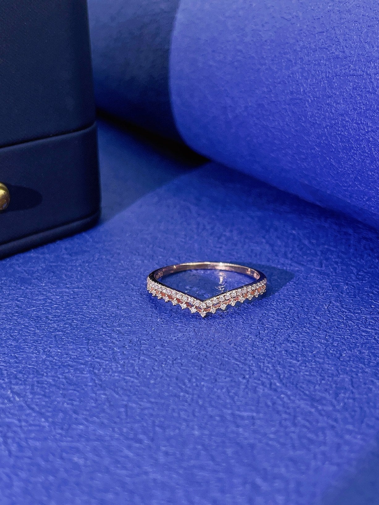Discover the elegance of our 18K Diamond Double Row V-Shape Ring, a stunning jewelry piece crafted to perfection. Adorned with delicate side diamonds totaling 0.13ct and weighing 1.36g, this ring is a symbol of luxury and sophistication. Its versatile size range from 10 to 17# (resizable) ensures a comfortable fit for everyone. Experience the luxury of fine jewelry that not only enhances your beauty but also makes a statement. Elevate your style with this exquisite ring that promises to be the center of attention wherever you go. Don’t miss the opportunity to add this masterpiece to your collection. Buy now and embrace the elegance it brings!