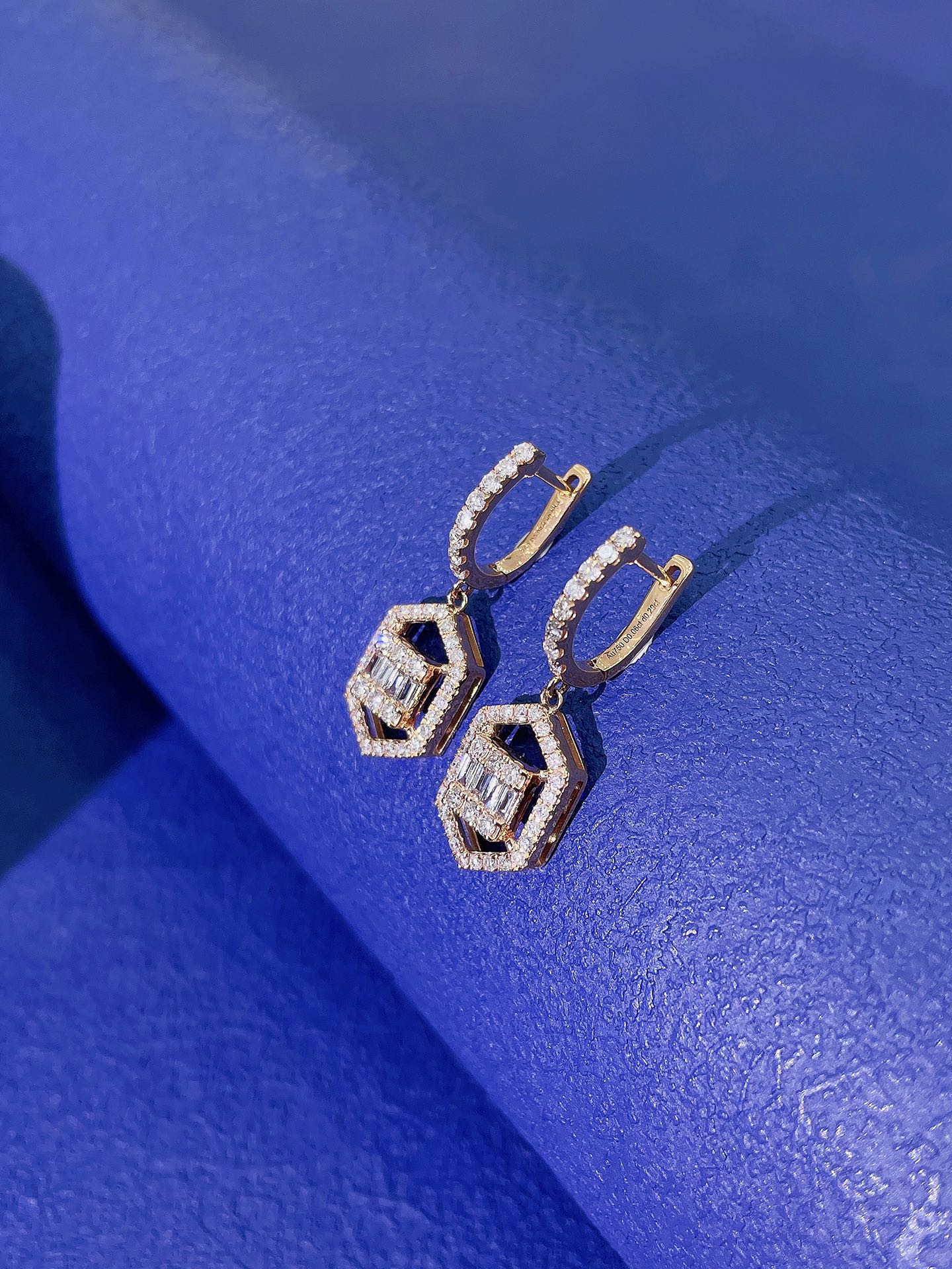 Elevate your style with our exquisite 18K Diamond Hollow Hexagonal Ear Cuff Jewelry. Crafted to perfection, this piece features a main stone of D0.12ct and accent stones totaling d0.58ct, all weighing 3.26g. The intricate design and sparkling diamonds make it a standout accessory for any occasion. Enhance your elegance and make a statement with this luxurious jewelry item. Don’t miss the opportunity to add this unique piece to your collection. Shop now and embrace the beauty of fine jewelry.