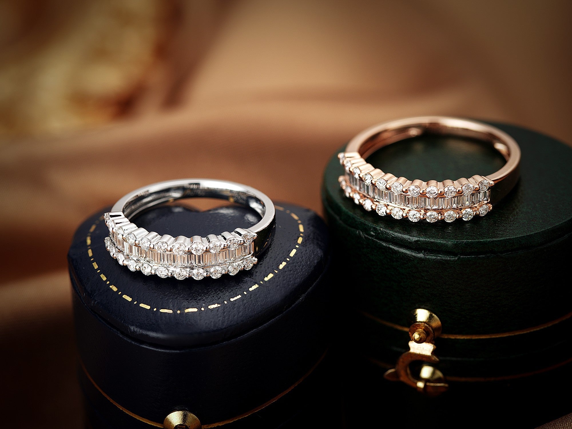 Experience the elegance of our 18K Diamond Round Ladder Band Ring, a stunning jewelry piece crafted with precision and finesse. The centerpiece boasts a dazzling 0.14ct diamond, complemented by 0.28ct of accent diamonds, all weighing 2.38g for a comfortable fit. Available in sizes 11 to 17 (adjustable for a perfect fit), this ring is designed to make a statement. Make a luxurious choice and elevate your style with this exquisite jewelry. Shop now and embrace the sparkle that defines you.