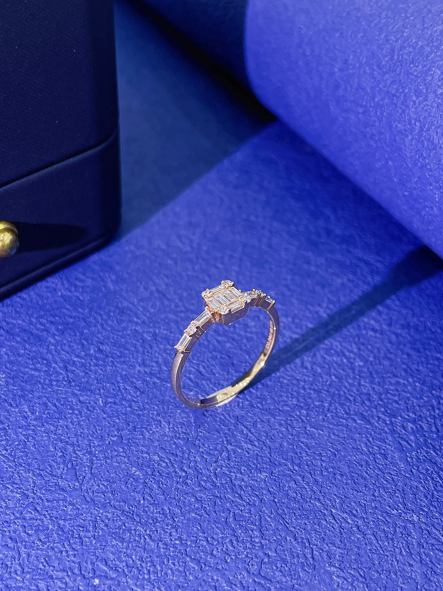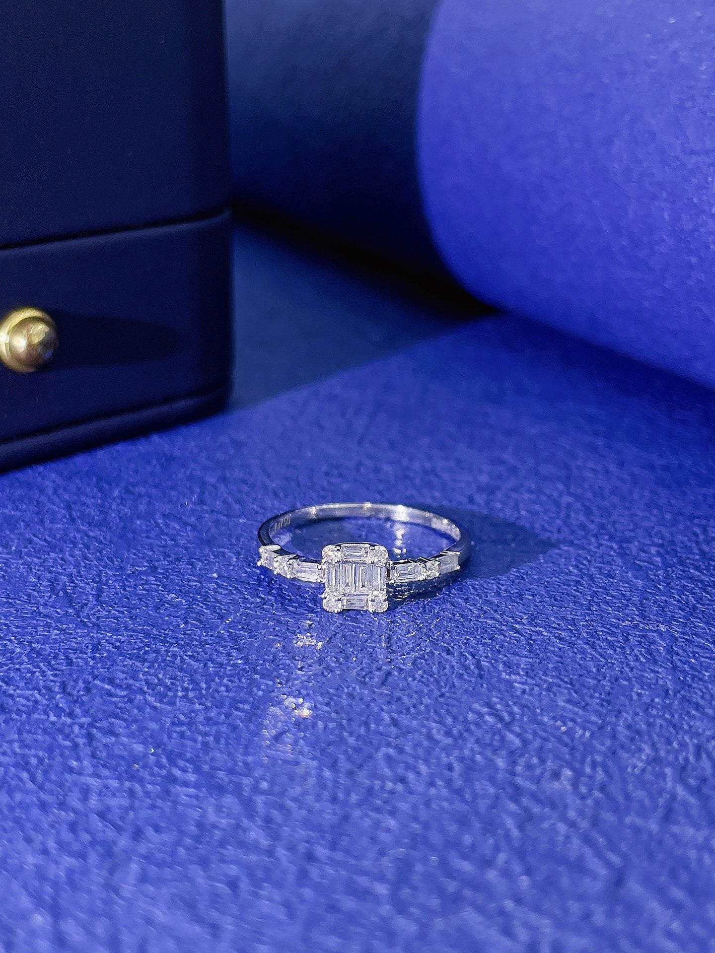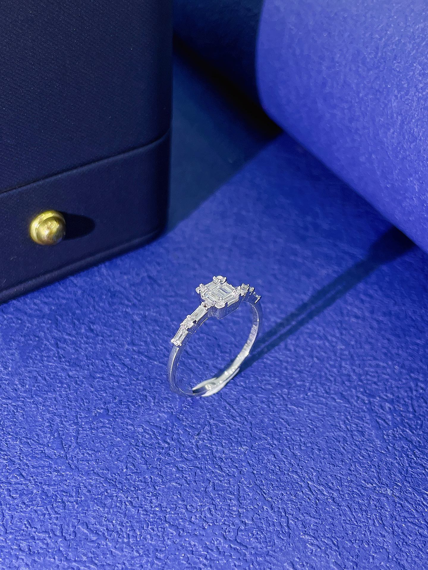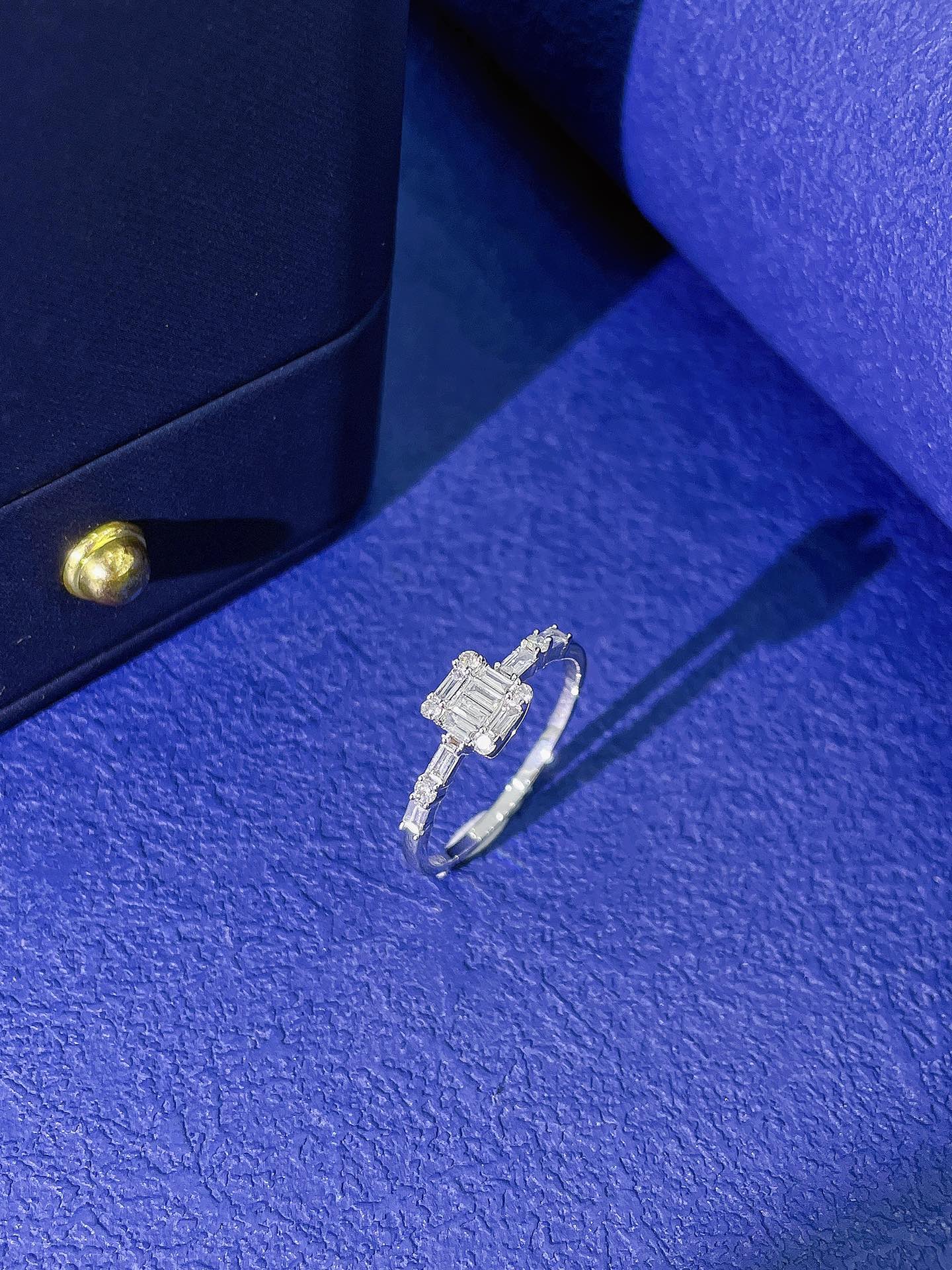 Discover the elegance of our 18K Diamond Square Sugar-Cube Step Cut Ring, a masterpiece in our jewelry collection. Crafted with precision, the main stone weighs 0.175ct, complemented by side stones totaling 0.10ct, all nestled in a 1.32g design. Available in sizes 11# to 17#, with resizable options for a perfect fit. This ring is not just an accessory; it’s a statement of timeless beauty and sophistication. Experience the luxury of this exquisite piece that adds a touch of glamour to every occasion. Elevate your style quotient and make a purchase that reflects your unique taste and elegance. Explore our jewelry range and embrace the elegance this ring promises. Buy now and adorn yourself with a symbol of eternal beauty.