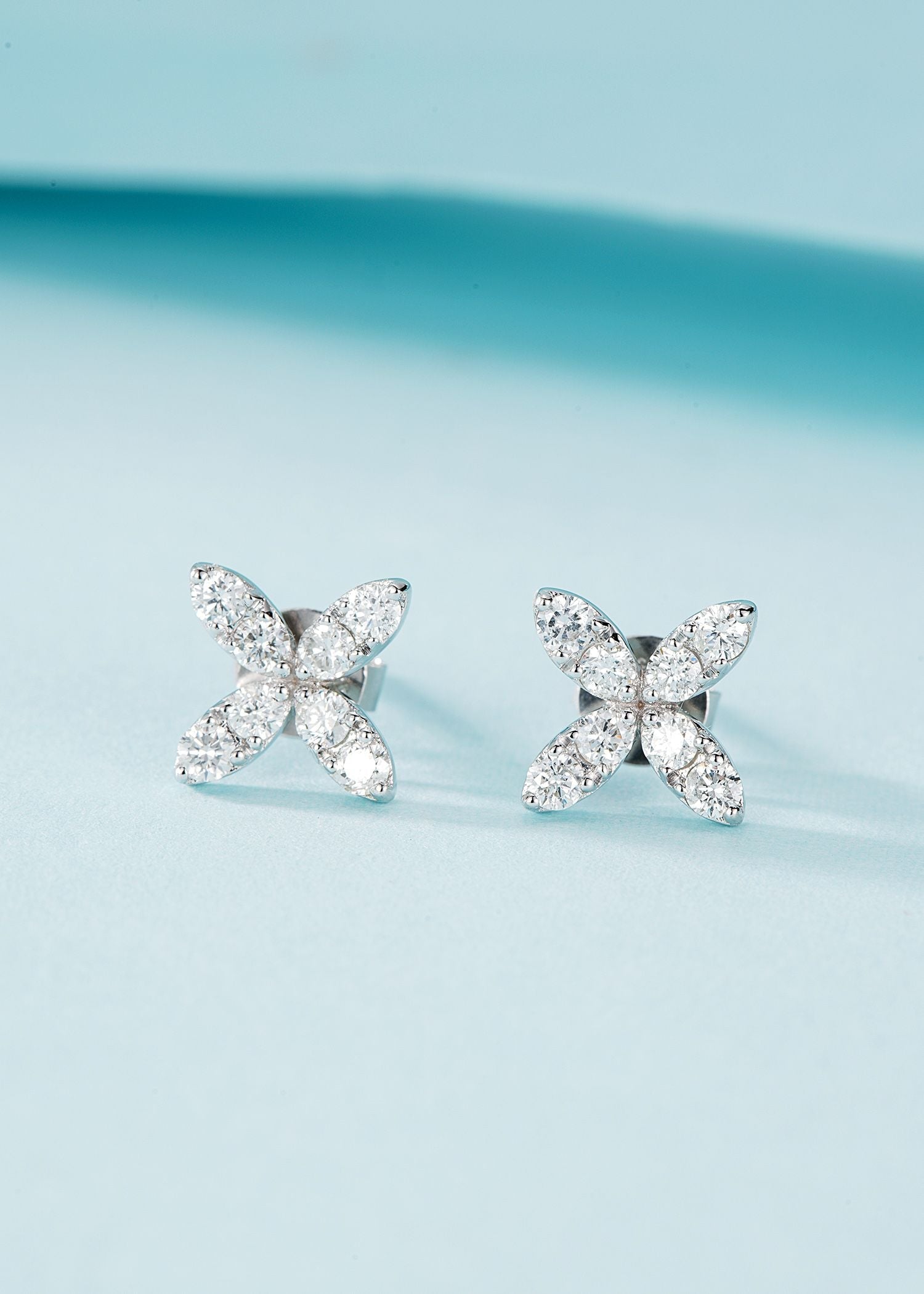 Elevate your elegance with our exquisite 18K Four-Leaf Clover Diamond Earrings. Crafted to perfection, these earrings feature a captivating design adorned with diamond melee, totaling 0.48ct, and have a total weight of 1.33g. Experience luxury and sophistication with every wear. Perfect for adding a touch of glamour to any occasion, these earrings are a must-have addition to your jewelry collection. Explore the timeless beauty of fine jewelry with us.