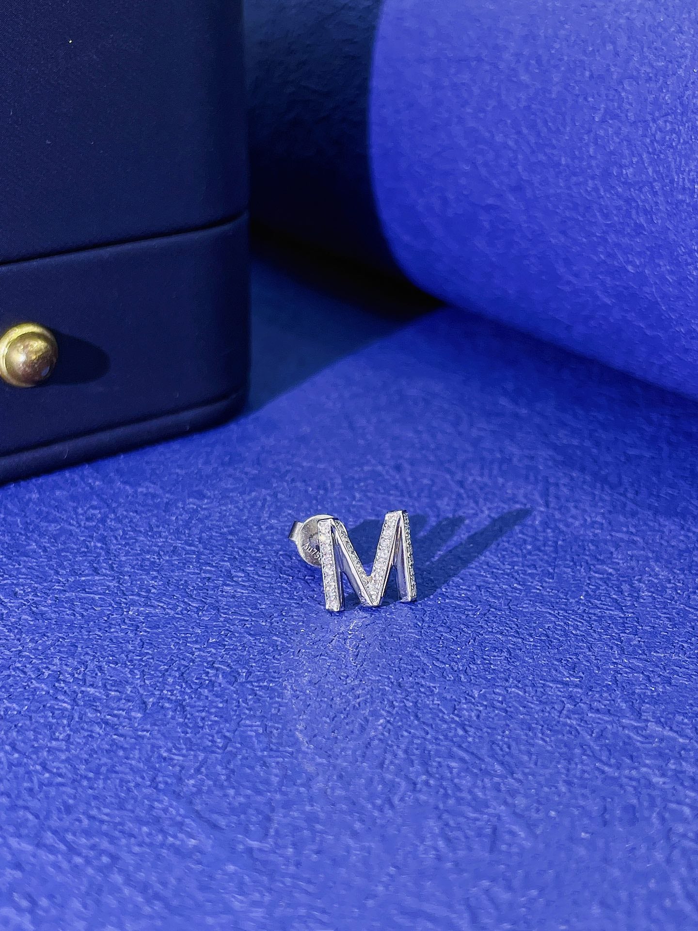 Elevate your everyday look with these exquisite 18K gold diamond M initial small stud earrings. Crafted with precision, these earrings feature a sparkling diamond as the centerpiece, with a total diamond weight of 0.08 carats. Lightweight and comfortable, these earrings have a total weight of 0.72 grams, making them perfect for all-day wear. Add a touch of elegance and sophistication to your jewelry collection with these must-have earrings. Shop now for a timeless piece of jewelry that celebrates your unique style.
