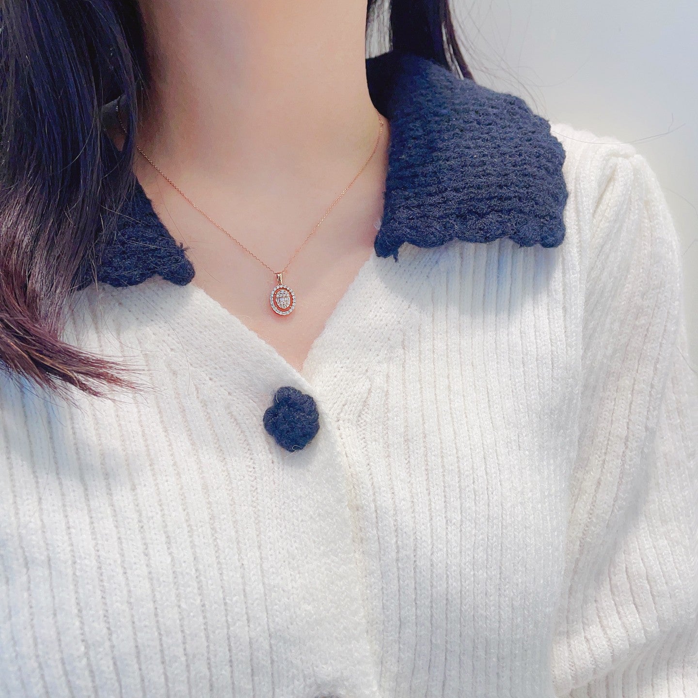 Indulge in the exquisite elegance of our 18K gold elliptical hollow pendant necklace, adorned with a dazzling main stone of D0.036ct and accentuated by secondary stones totaling d0.27ct. The lightweight design, with a total weight of 2.0g, ensures comfortable wear for any occasion. Crafted to perfection, this piece of jewelry not only enhances your natural beauty but also makes a statement of sophistication. Elevate your jewelry collection with this timeless masterpiece that promises to be the envy of all. Experience luxury at your fingertips and make this exquisite necklace a part of your cherished memories. Shop now and embrace the elegance it brings!