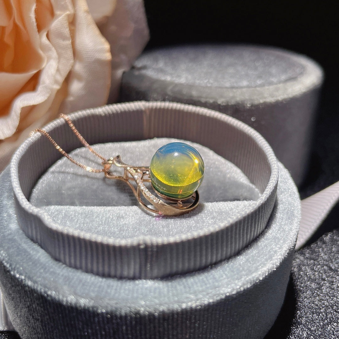 Embrace happiness as the essence of your being with our exquisite 18K gold embedded Dominican blue amber pendant. Crafted to perfection, this jewelry piece features a stunning 10mm main stone that radiates a captivating blue hue. Certified by GIC with authentic Dominican origin, this pendant is not just an accessory; it’s a statement of your joyful spirit.