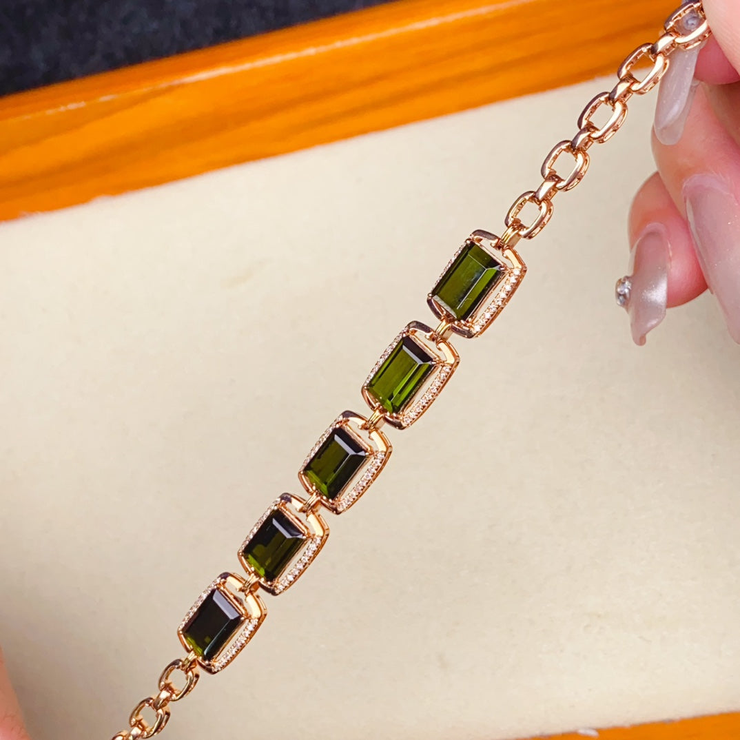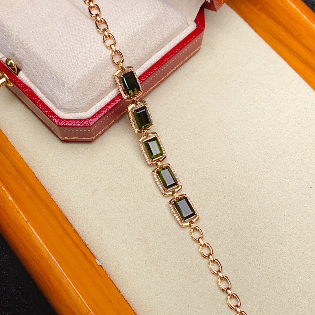 Indulge in the allure of our 18K gold embedded natural tourmaline bracelet, a stunning piece of jewelry known for its powerful magnetic field that attracts wealth and enhances relationships. This bracelet is not just a beautiful accessory, but it also carries the reputation of bringing prosperity to its wearer and harmony in relationships. With a total weight of 9.06g, featuring a prominent 7.7ct tourmaline stone surrounded by 90 dazzling diamonds totaling 0.27ct, this bracelet is a perfect choice for both self-wearing and gifting. Each piece comes with a certificate of authenticity E21894, ensuring its quality and value. Don’t miss out on this opportunity to adorn yourself or your loved ones with this exquisite jewelry that not only enhances your style but also brings positive energies. Act now and make this charming bracelet a part of your jewelry collection.