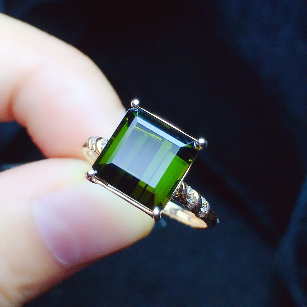 Indulge in the mesmerizing beauty of our 18K gold embedded natural tourmaline ring. The crystal is exceptionally transparent, radiating a brilliant fire that captivates the eye. With a total weight of 2.27g and a stunning 4.1-carat main stone, this ring is adorned with 16 dazzling diamonds that add an extra touch of elegance. Accompanied by a certificate of authenticity and presented in a luxurious gift box, this piece of jewelry is a true testament to luxury and sophistication. Don’t miss out on the opportunity to own this exquisite jewelry that will elevate your style and make you stand out from the crowd. Act now and make this stunning ring a part of your collection.