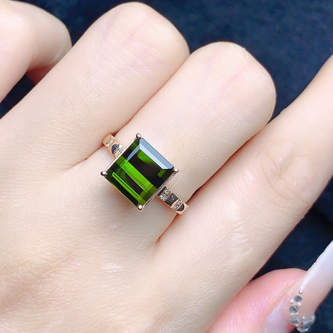 Adorn yourself with this stunning 18K gold embedded natural tourmaline ring, a true testament of elegance and sophistication. Weighing in at 2.6g, this exquisite jewelry features a captivating 3.9ct tourmaline as its centerpiece, complemented by 12 sparkling diamonds totaling 0.036ct. Crafted with meticulous attention to detail, this ring is more than just an accessory; it’s a statement of your unique style and refined taste.