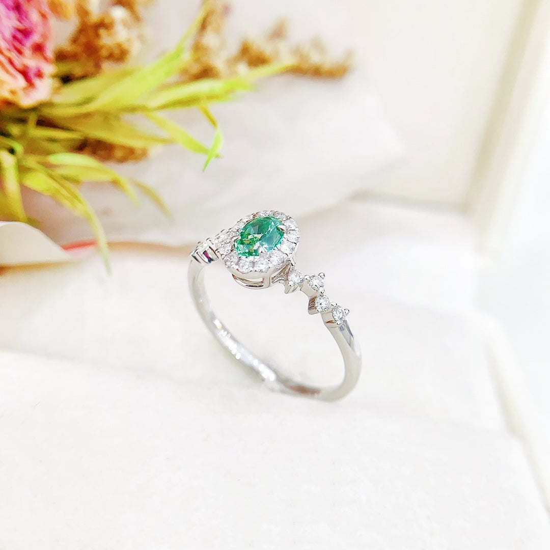 Indulge in the elegance of our 18K Gold Green Diamond Oval Twist Arm Ring, a true masterpiece of jewelry craftsmanship. This exquisite ring features a centerpiece green diamond weighing D0.52ct, complemented by accent diamonds totaling d0.22ct, creating a dazzling display of light and color. Crafted with precision, it boasts a total weight of 2.18g and a size 12# ring band that can be resized to fit perfectly. Embrace the luxury of this stunning jewelry piece, designed to make a statement and elevate your every look. Discover the allure of fine jewelry that not only captivates but also retains its value. Explore the beauty of JZ032-G, a jewelry gem waiting to adorn your finger and elevate your style quotient. Experience the enchantment today!