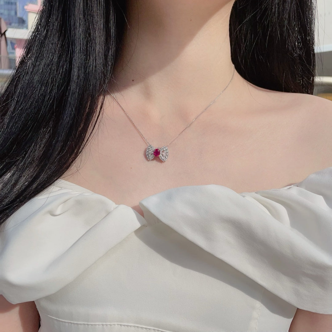 Discover the exquisite elegance of our 18K Gold Ruby Elliptical Butterfly Dual-Wear Jewelry. This masterpiece features a vibrant main stone weighing 1.01 carats, complemented by a dazzling array of accent stones totaling 1.16 carats. Crafted with precision, this jewelry piece has a total weight of 6.62 grams and a size 14 ring setting (adjustable for a perfect fit).