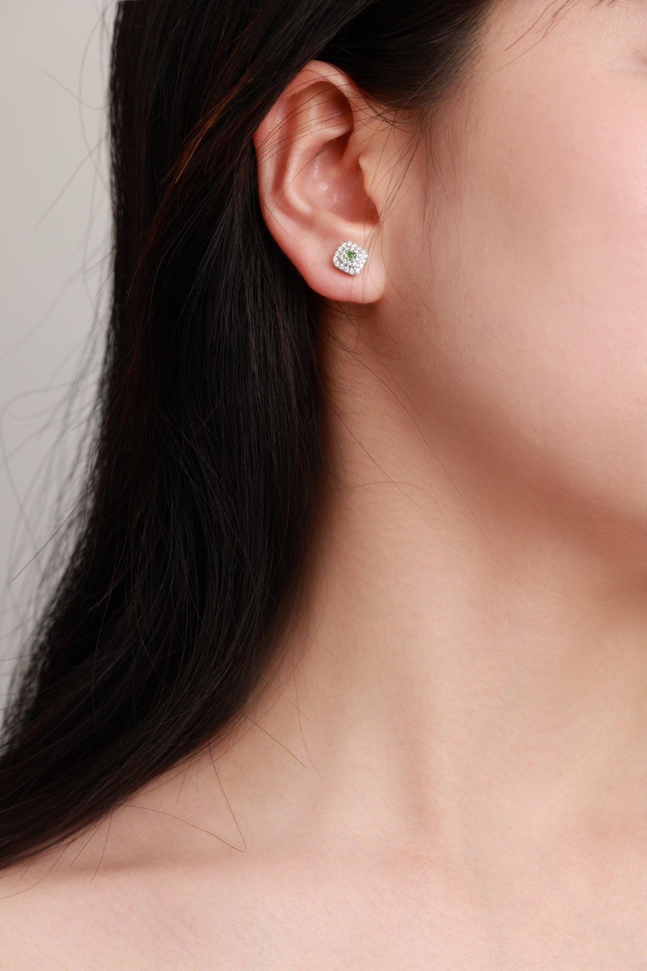 Invest in these earrings as a symbol of your unique style and sophistication. Whether it’s a special occasion or an everyday luxury, these earrings are the perfect choice. Don’t miss the opportunity to add this exquisite jewelry to your collection. Elevate your style today with our 18K Green Diamond Cushion-Cut Halo Earrings.