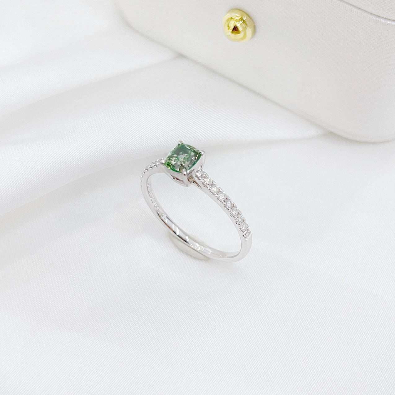 Don’t miss the opportunity to make this exquisite jewelry your own. Experience the allure of premium green diamond jewelry that complements every outfit and occasion. Order now and embrace the elegance that only a high-quality, custom-made piece can offer. Make a lasting impression with our 18K Green Diamond Solitaire Cushion Cut Ring – a true masterpiece in the realm of jewelry.
