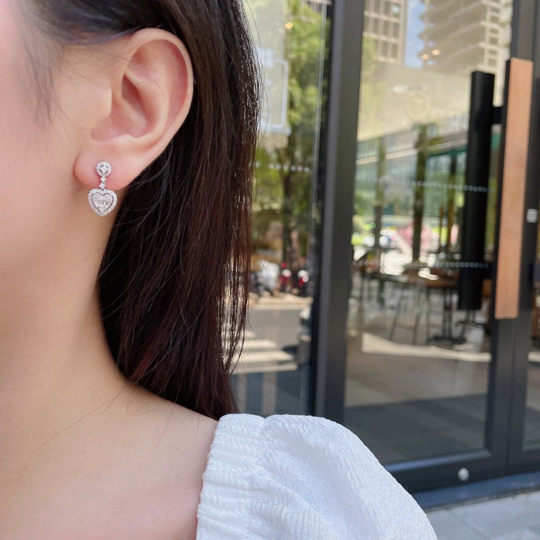 Experience the elegance with our exquisite 18K heart-shaped diamond earrings. Crafted to perfection, these earrings feature a main stone of D0.04ct and accent stones totaling d0.32ct, all nestled in a 2.33g setting. The sparkling diamonds, carefully selected for their brilliance, make these earrings a symbol of love and luxury. Perfect for any occasion, these earrings are designed to enhance your natural beauty and make you feel special. Elevate your jewelry collection with this timeless piece that combines sophistication with a touch of romance. Don’t miss the opportunity to own this stunning jewelry that speaks of love and elegance. Shop now and make a statement with every wear!