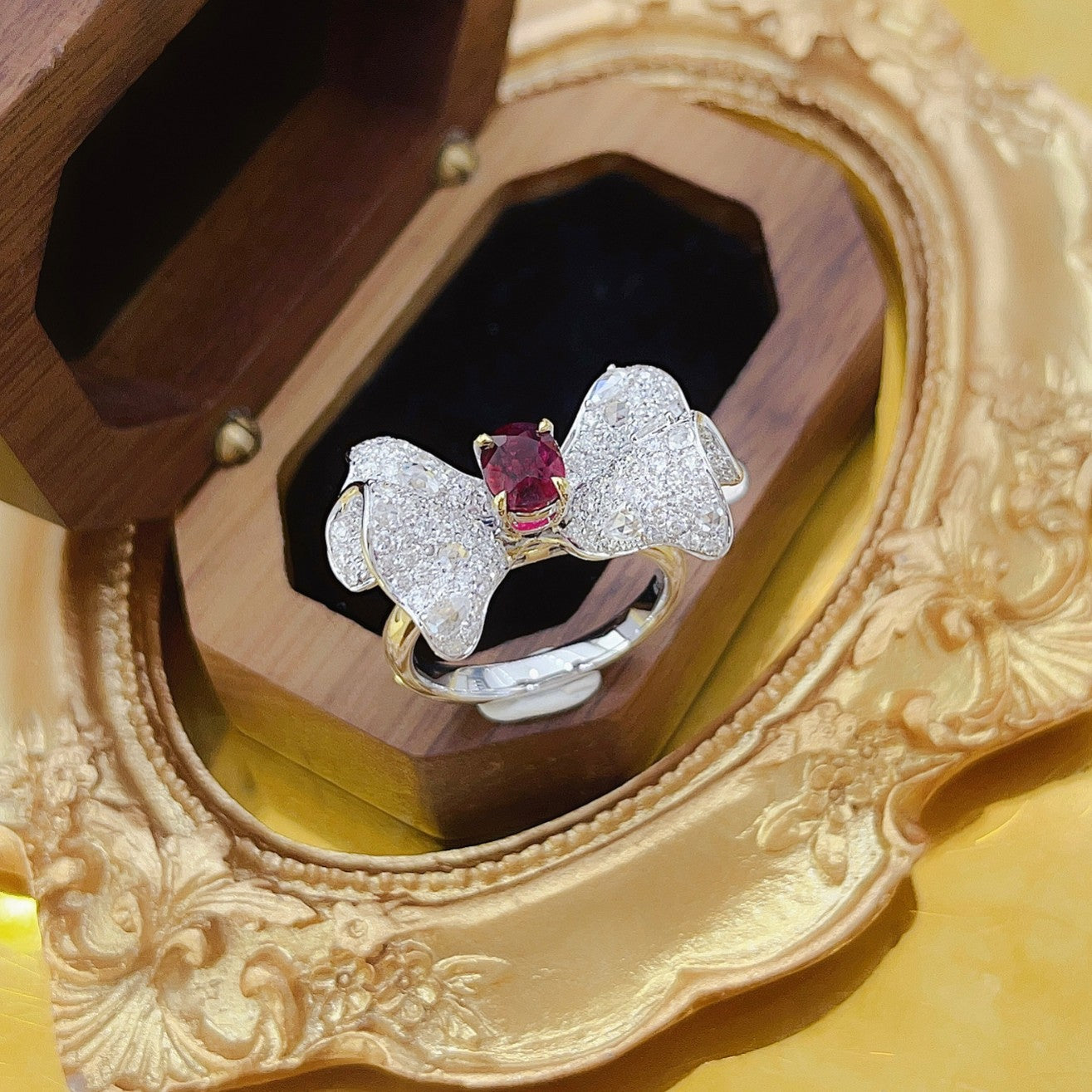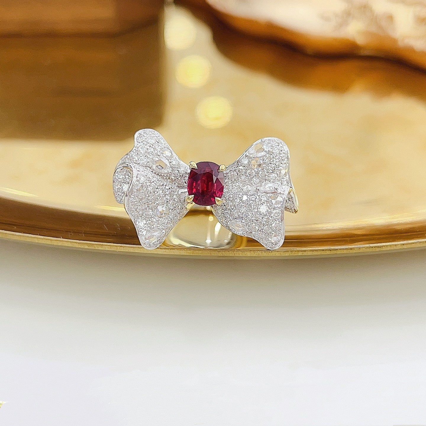 Discover the exquisite elegance of our 18K Irregular Butterfly Ring, adorned with a captivating ruby as the main stone weighing R1.05ct, complemented by accent stones totaling d1.38ct. Crafted with precision and weighing 9.66g, this ring is a masterpiece of jewelry art. The ring size is 15#, adjustable for a perfect fit. Accompanied by an authoritative AIGS certificate, the ruby is certified as a no-heat Pigeon’s Blood, assuring its exceptional quality and rarity. Embrace the enchantment of this unique piece, designed to elevate your every look. Experience the luxury of fine jewelry that not only makes a statement but also resonates with your individuality. Explore our premium jewelry collection and indulge in the allure of this remarkable ring. Shop now to adorn yourself with a timeless treasure.