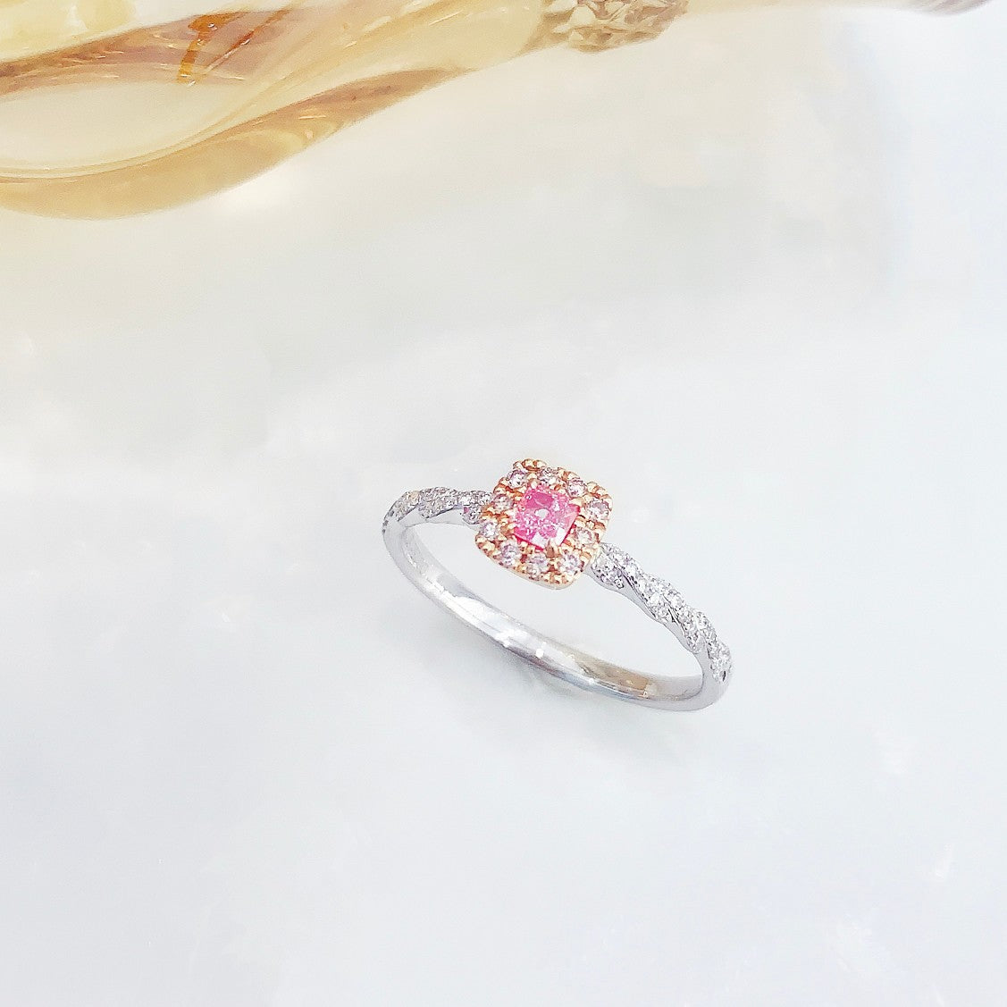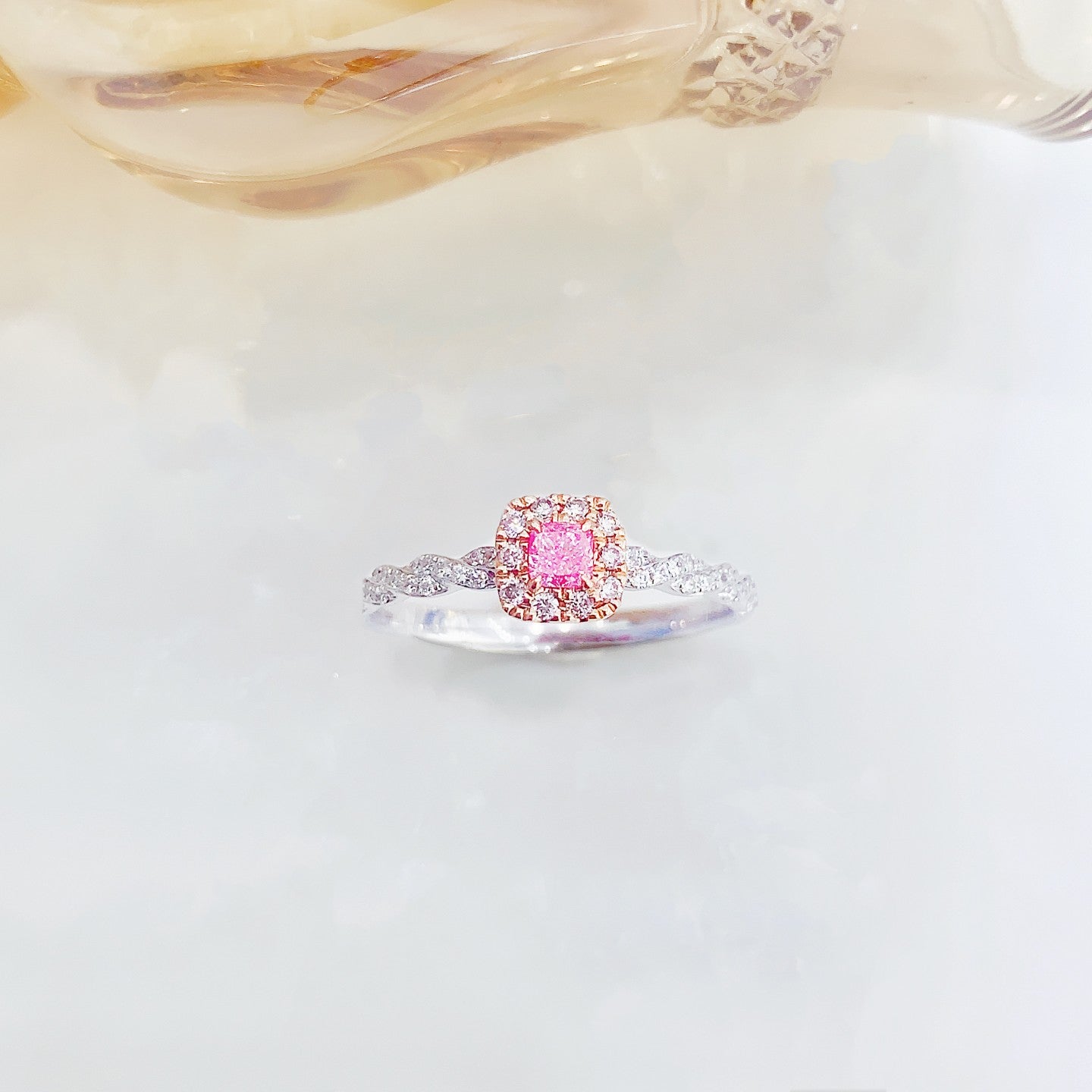 Indulge in the luxury of our exquisite 18K Pink Diamond Cushion-Cut Twist Ring. This stunning piece features a central pink diamond weighing 0.15ct, complemented by smaller diamonds totaling 0.19ct, creating a dazzling display of light and sparkle. Crafted with precision and attention to detail, this ring is a true masterpiece of jewelry artistry. With a total weight of 2.13g and a size 16# (resizable for your comfort), it’s the perfect addition to any jewelry collection. Elevate your style and make a statement with this remarkable ring. Discover the allure of fine jewelry and seize the opportunity to own this exquisite piece. Shop now and embrace the elegance it brings.
