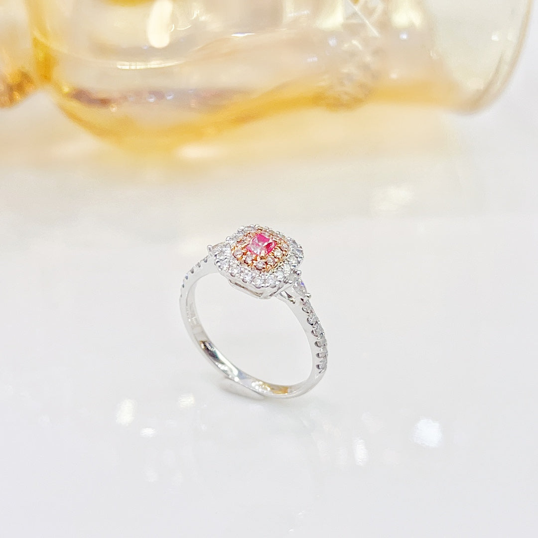 Discover the exquisite elegance of our 18K Pink Diamond Cushion Double Teardrop Ring, a masterpiece in fine jewelry craftsmanship. Adorned with a central diamond weighing 0.12ct and complemented by accent diamonds totaling 0.38ct, this ring boasts a total weight of 2.28g. Available in sizes 12, 14, and 16 (adjustable for a perfect fit), it’s a symbol of luxury and sophistication.