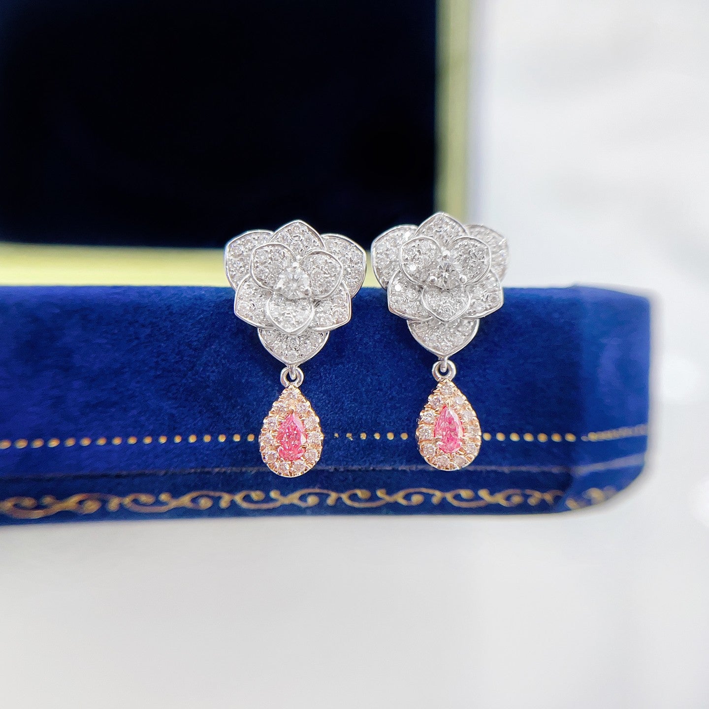 Indulge in the luxury of our exquisite 18K pink diamond drop earlobe jewelry, featuring a captivating marquisette flower design. The main stone boasts a D0.12ct weight, complemented by accent stones totaling d0.54ct, all elegantly crafted into a lightweight 3.86g piece. This stunning jewelry is not just an accessory, but a statement of refined taste and sophistication. Elevate your every look with this alluring piece that effortlessly combines elegance with a touch of modern flair. Discover the allure of pink diamonds and make this exceptional jewelry the new centerpiece of your collection. Experience the enchantment and order now to embrace the timeless beauty it offers.