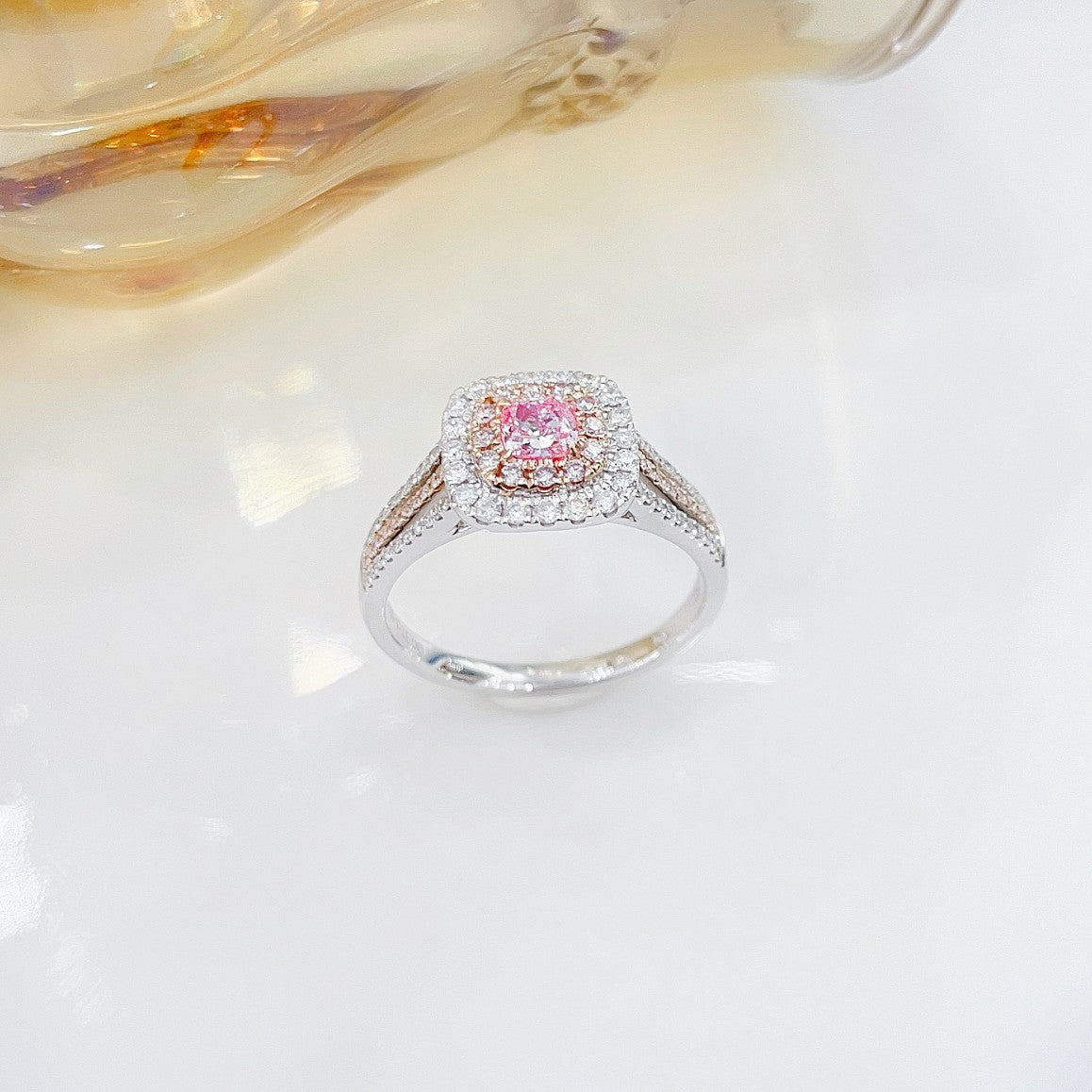 Indulge in the exquisite luxury of our 18K Pink Diamond GIA Double Halo Color Split Ring. This ring boasts a mesmerizing main stone of D0.31ct, complemented by accent stones totaling d0.45ct, all elegantly set in a 4.10g design. The ring size is 14#, adjustable to fit your unique preferences. Accompanied by the prestigious GIA international certificate, this ring is a testament to its authenticity and quality. Elevate your jewelry collection with this stunning piece that exudes elegance and sophistication. Discover the allure of this remarkable ring and make it yours today. Experience the essence of high-end jewelry that speaks to your unique style and taste. Shop now and embrace the beauty of luxury.