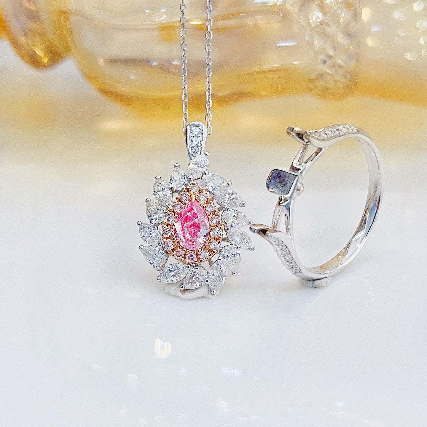 Discover the exquisite elegance of our 18K pink diamond jewelry, featuring a stunning GIA-certified drop windmill design that can be worn in two unique ways. The main stone boasts a dazzling D0.45ct, complemented by an array of side stones totaling d1.44ct, all crafted to perfection in a 4.99g masterpiece. The ring size is 14#, adjustable for a personalized fit. With its accompanying GIA international authority certificate, this jewelry piece is a testament to luxury and sophistication. Embrace the rarity and allure of pink diamonds – elevate your jewelry collection with this remarkable piece that encapsulates both beauty and investment value. Shop now and indulge in the luxury you deserve.