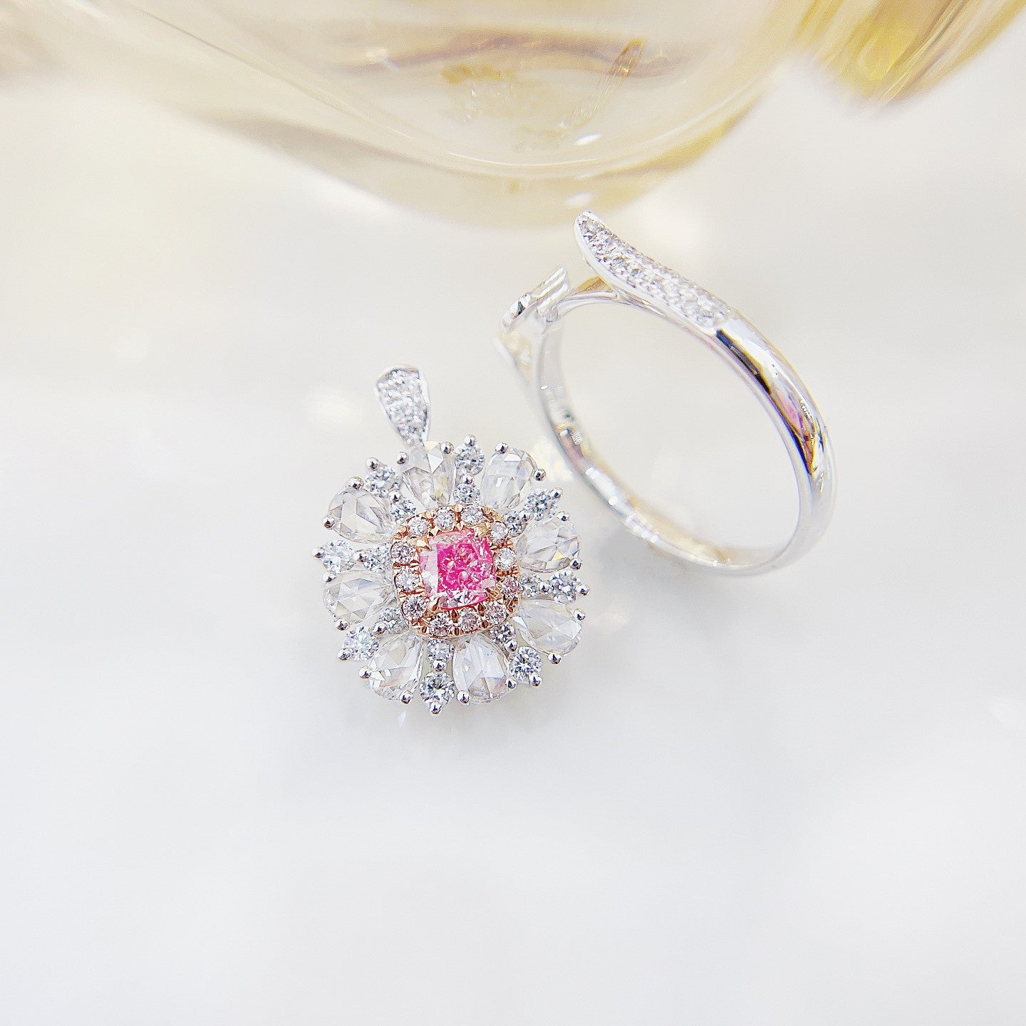 Elevate your every look with this remarkable piece of jewelry that combines timeless beauty with modern versatility. Embrace the luxury and make this exquisite 18K Pink Diamond Pillow-shaped Rose-cut & Drop-shaped Two-way Wear Jewelry a part of your cherished collection today.