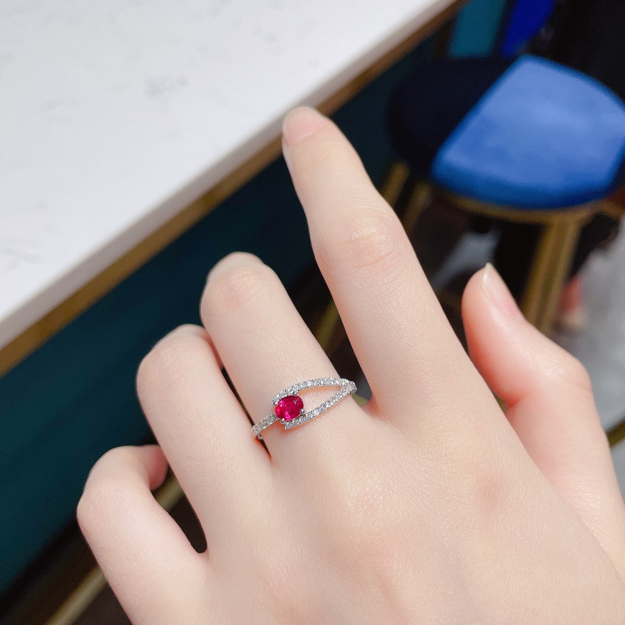 Discover the elegance of our 18K rose gold elliptical Y-shaped ring adorned with exquisite rubies. The main stone boasts a weight of 0.37 carats, complemented by accent stones totaling 0.24 carats. Crafted with precision, this ring has a total weight of 1.53 grams and is available in sizes 11 to 17 (resizable for a perfect fit). Embrace the luxury of this timeless piece that adds a touch of sophistication to any attire. Elevate your jewelry collection with this exquisite ruby ring that symbolizes both elegance and style. Experience the allure of premium jewelry that makes a statement. Shop now to make this exquisite piece a part of your cherished collection.