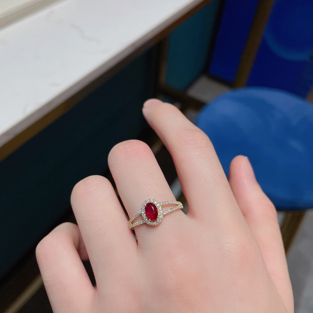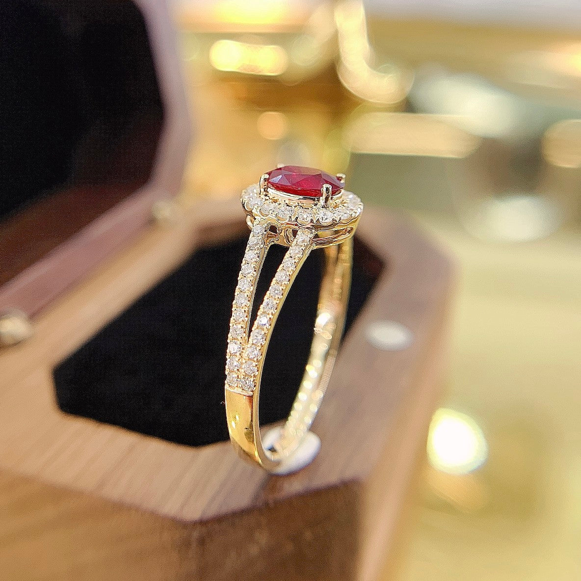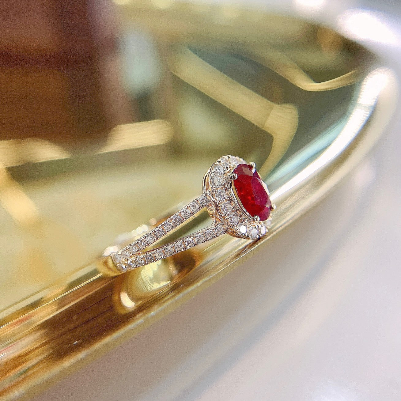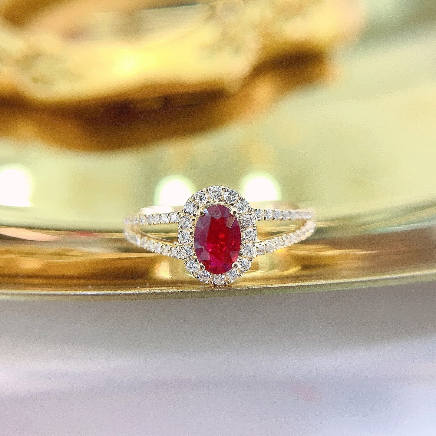 Indulge in the exquisite elegance of our 18K rose gold ruby oval diamond-surrounded Y-arm ring. This stunning piece features a main gemstone weighing 0.46 carats, complemented by side stones totaling 0.29 carats, all set in a 2.31-gram masterpiece. The ring size ranges from 11# to 17#, ensuring a perfect fit that can be adjusted to your preference. Crafted with meticulous attention to detail, this ring is a testament to timeless beauty and sophistication. Elevate your jewelry collection with this luxurious addition that is sure to captivate attention and spark conversations. Discover the allure of fine jewelry that not only adorns but also empowers. Make a statement with every wear and experience the joy of owning a piece that truly resonates with your unique style. Shop now and embrace the elegance that awaits you.